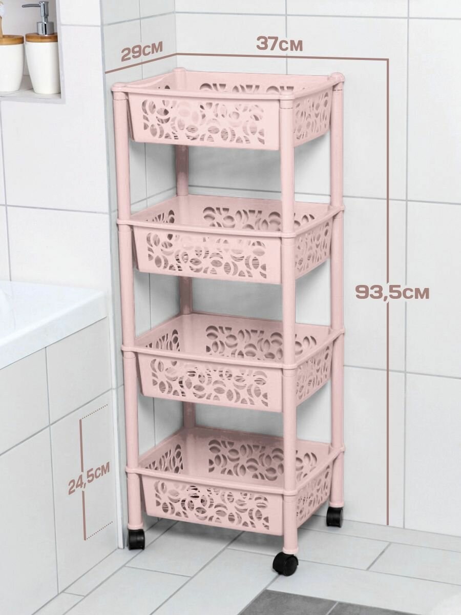 Этажерка на колесиках 4 полки 37х29х93,5 см полка для хранения