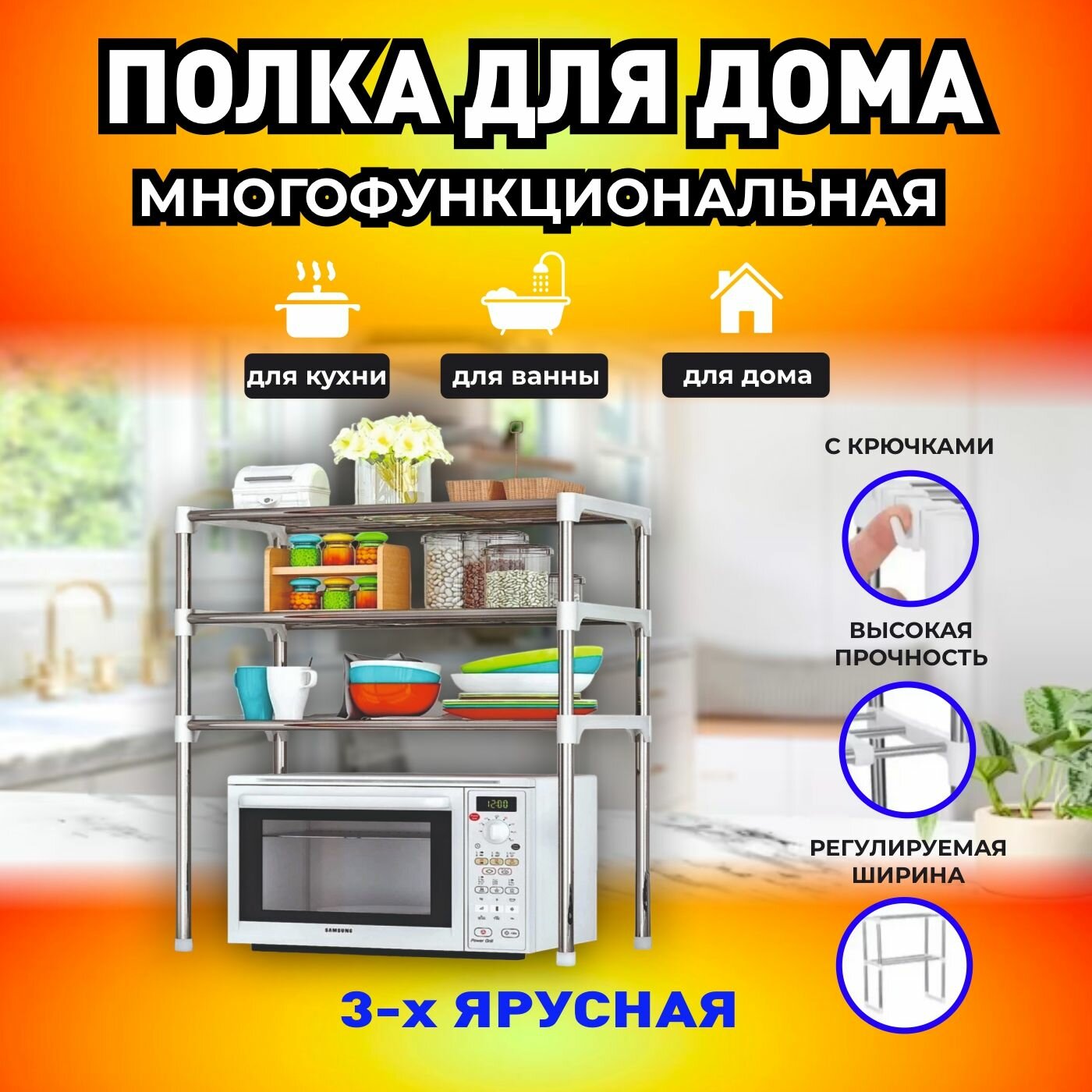 Купить Тройная полка стеллаж для микроволновки органайзер, 1 штука