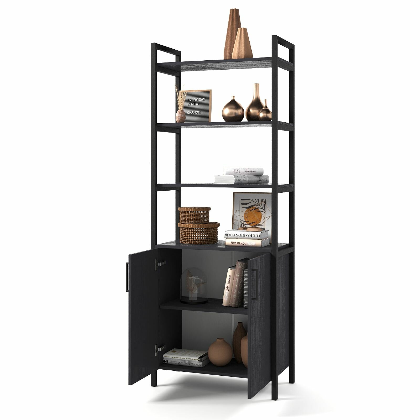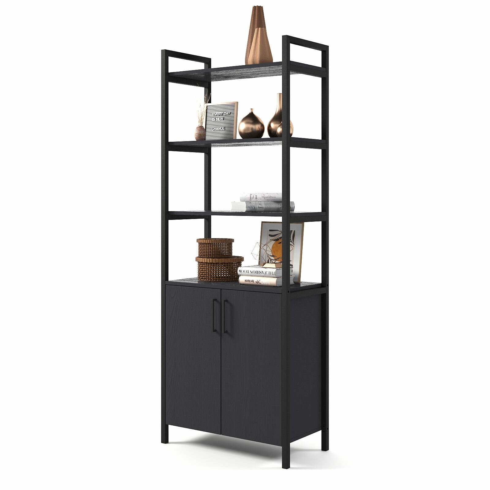 Купить Стеллаж лофт BRUNO с дверцами и полками (180х68х34см) Черный Оникс