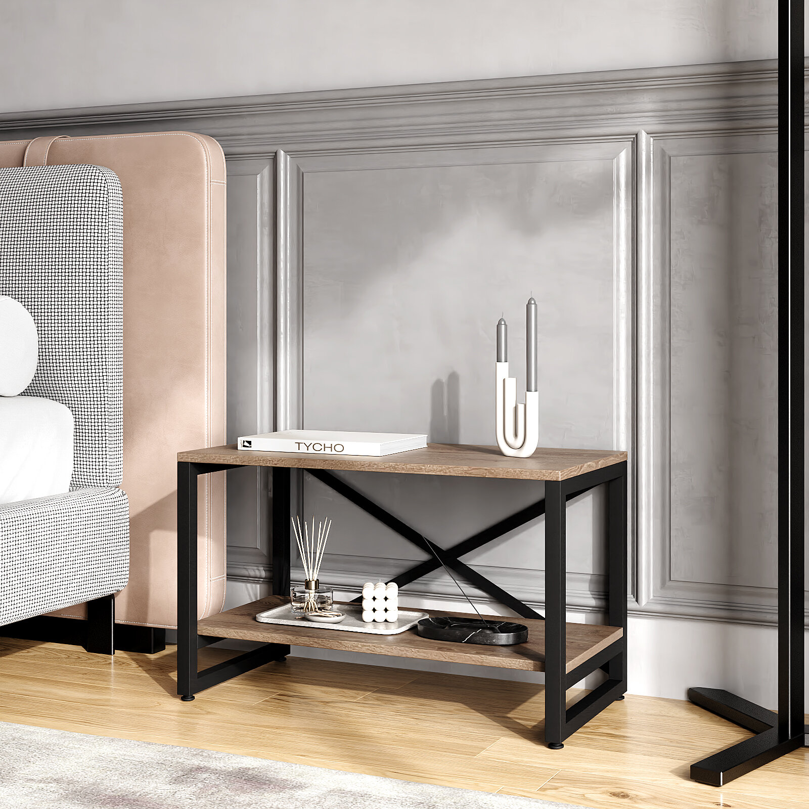 Стеллаж лофт BRUNO 2 полки (44х68х34см) Дуб Веллингтон