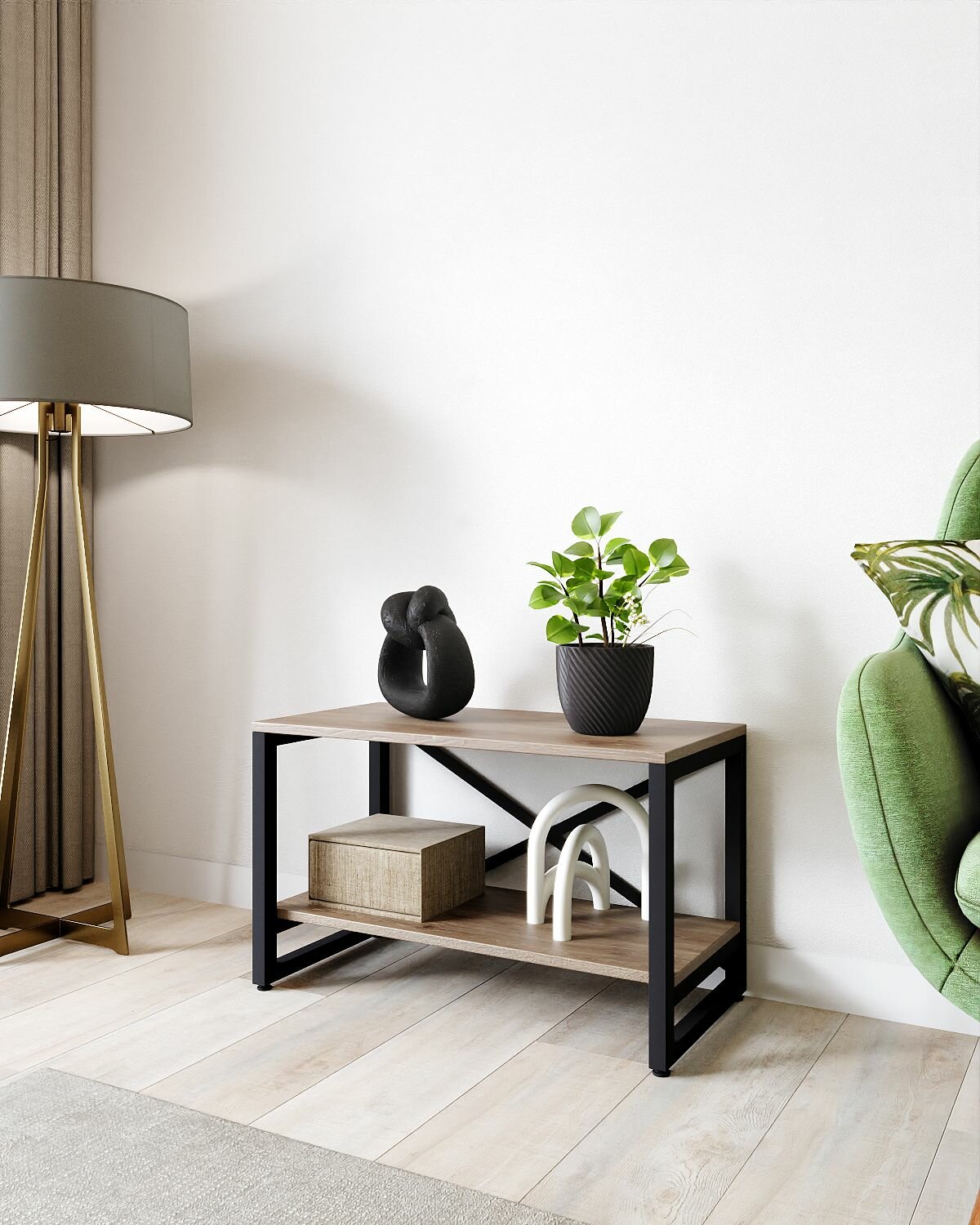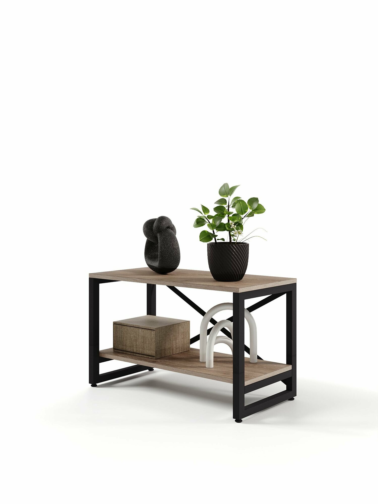 Стеллаж лофт BRUNO 2 полки (44х68х34) Черный Оникс