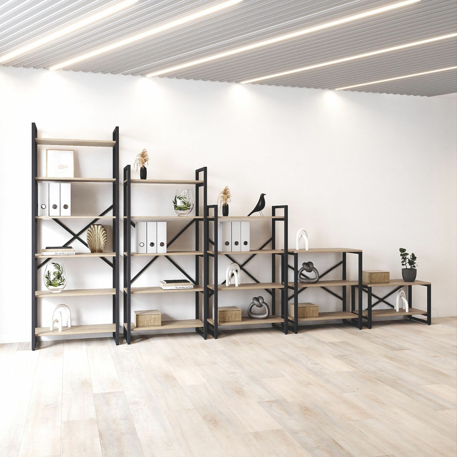 Стеллаж лофт BRUNO DOUBLE 6 полок (180х134х34см) Дуб Канзас