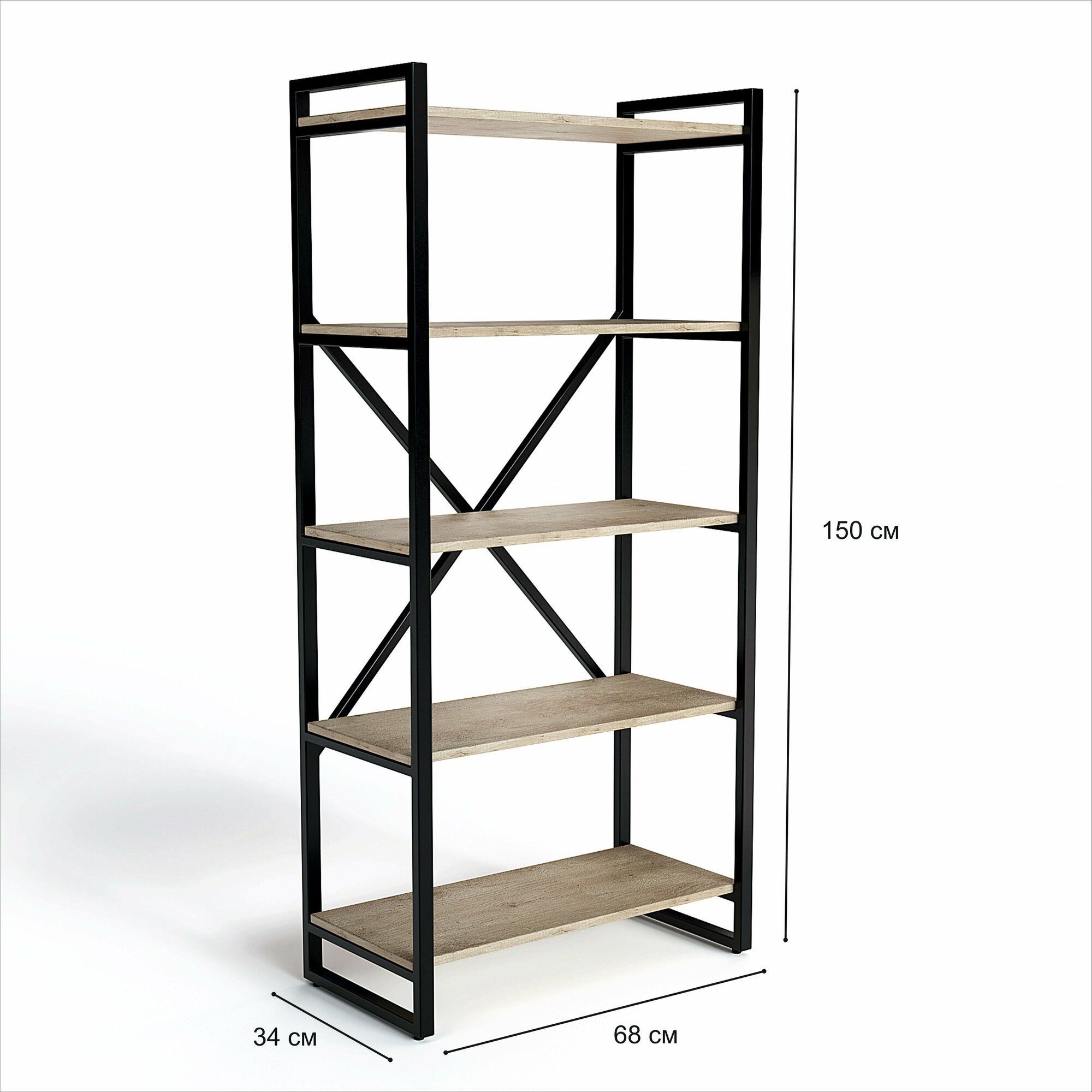 Стеллаж лофт BRUNO 5 полок (150х68х34см) Дуб Давос