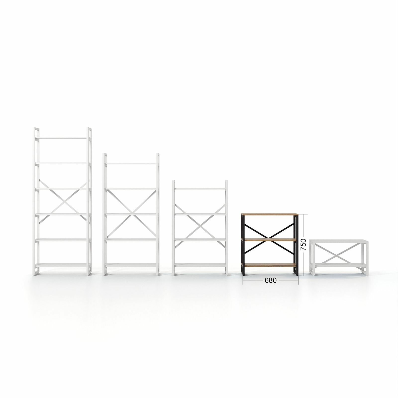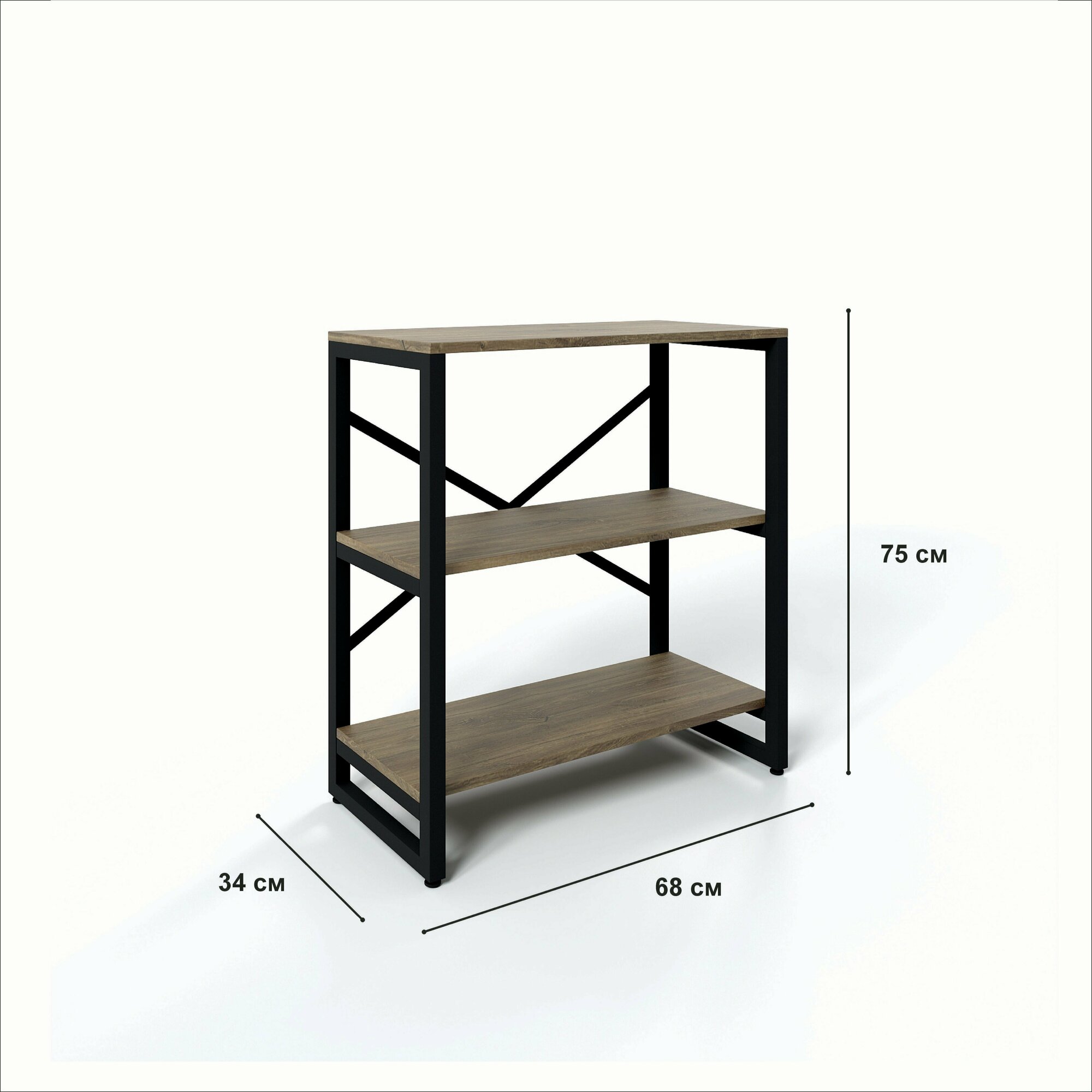 Стеллаж лофт BRUNO 3 полки (75х68х34см) Дуб Веллингтон