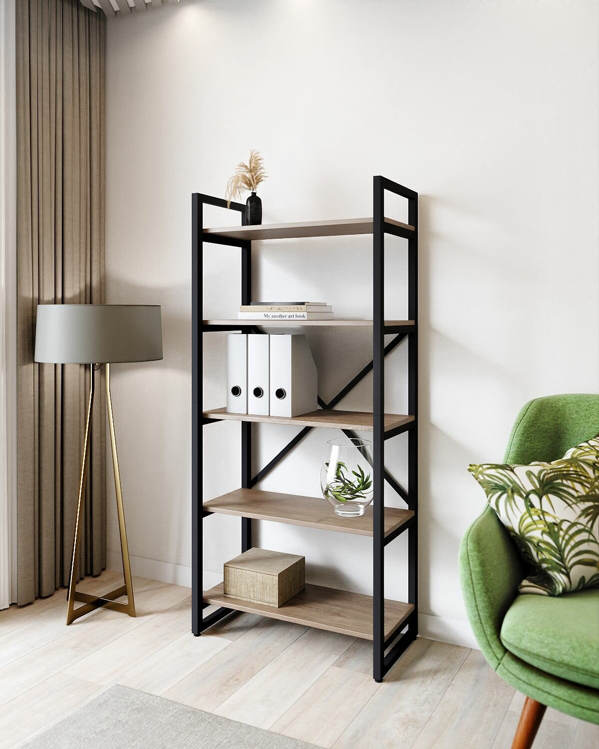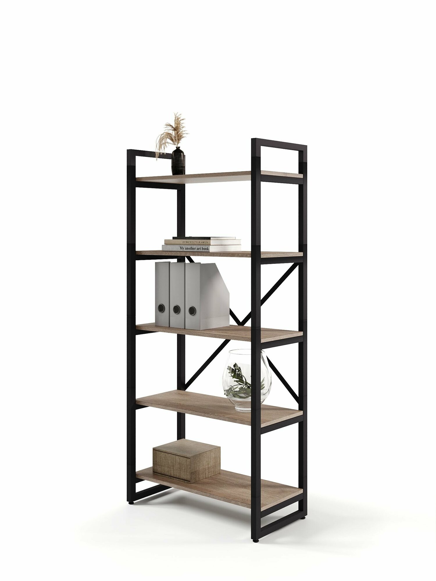 Стеллаж лофт BRUNO 5 полок (150х68х34см) Дуб Канзас