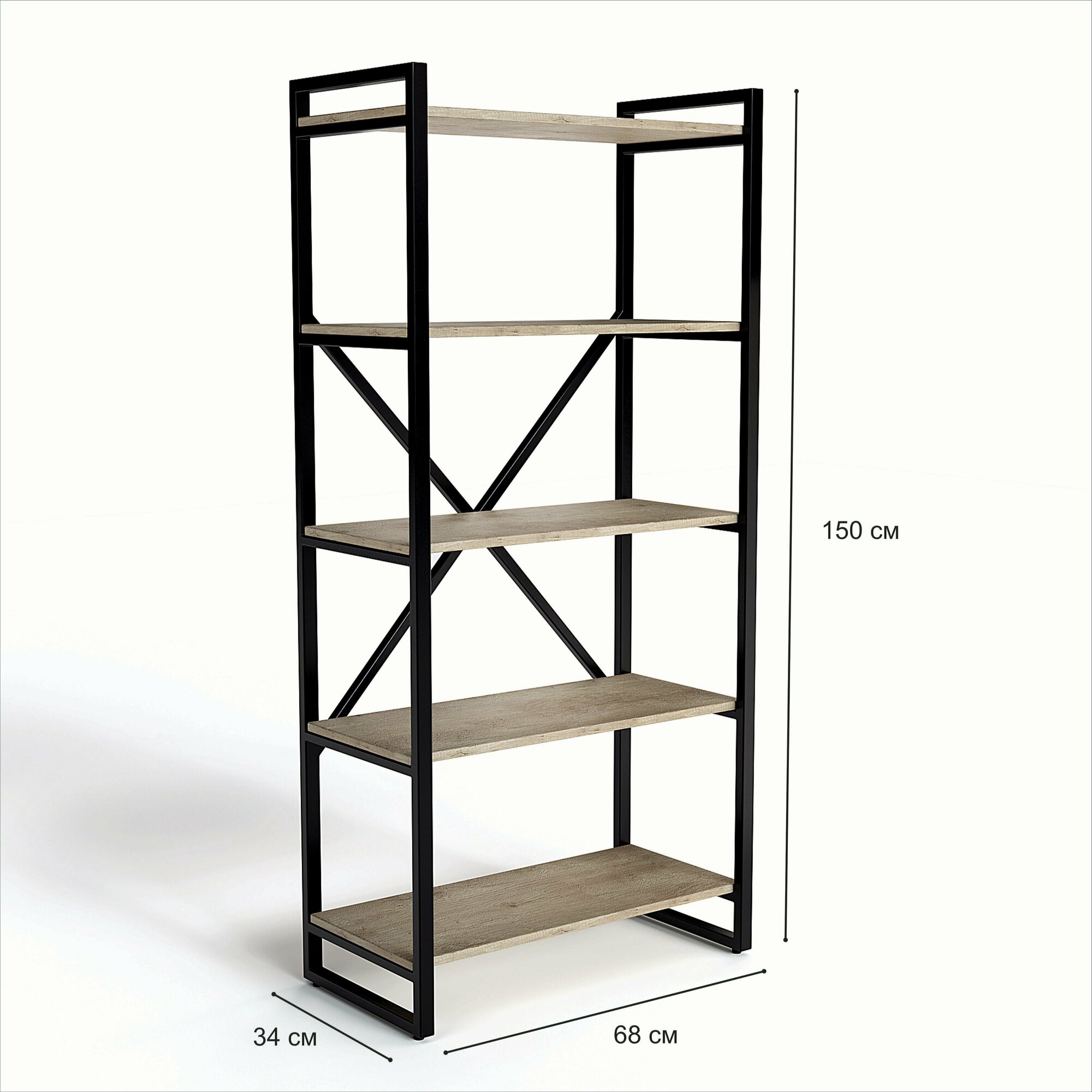 Купить Стеллаж лофт BRUNO 5 полок (150х68х34см) Дуб Давос
