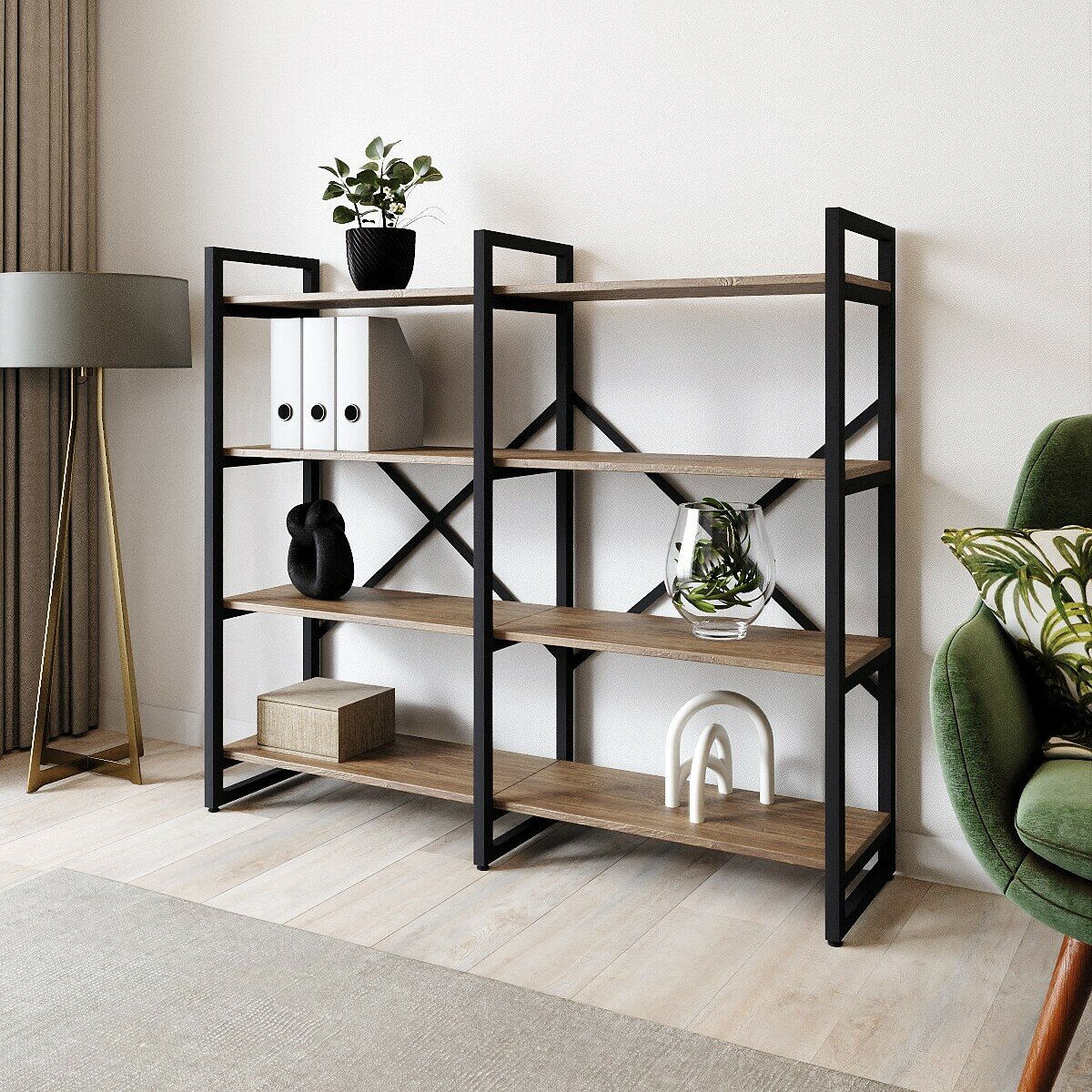 Купить Стеллаж лофт BRUNO DOUBLE 4 полки (117х134х34см) Дуб Канзас