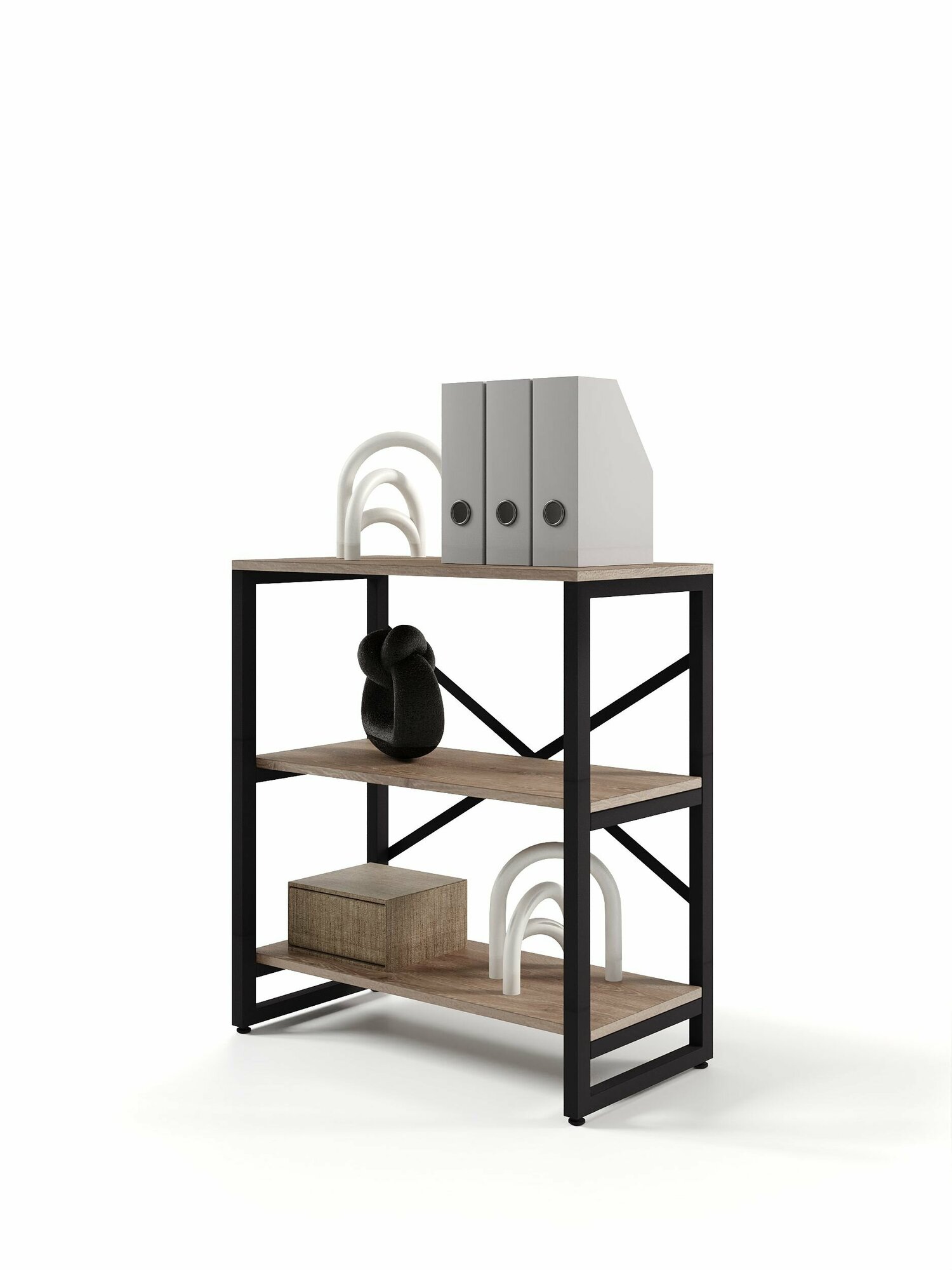Стеллаж лофт BRUNO 3 полки (75х68х34см) Дуб Веллингтон