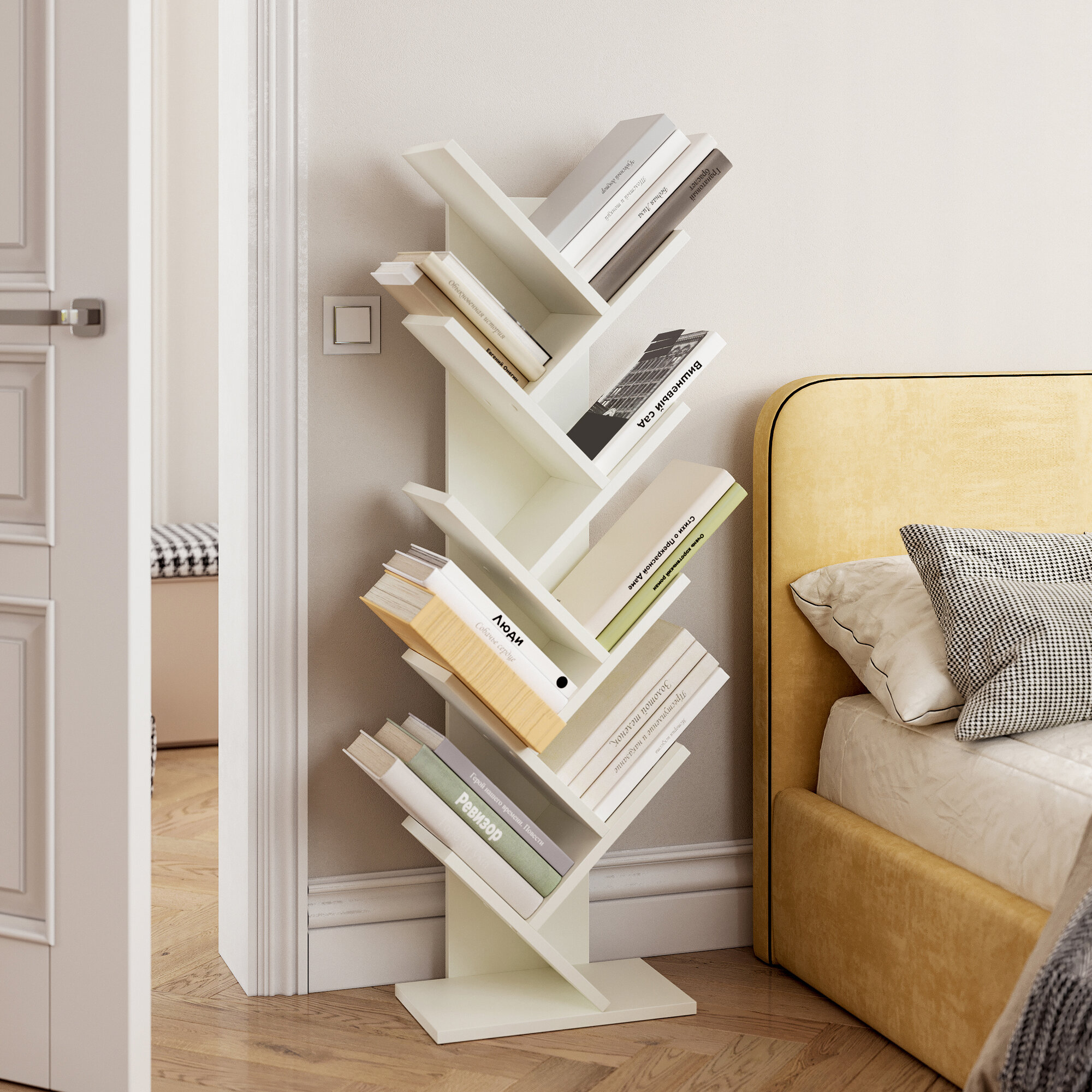 Стеллаж Граникум "Агния" напольный, стильный дизайн, 8 секций, белый, ЛДСП