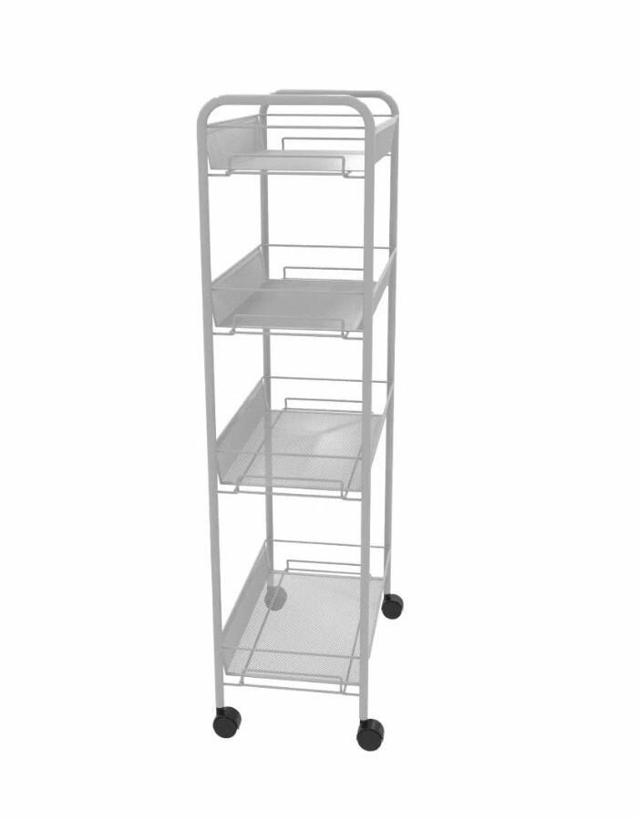 Этажерка Ладья на колесиках 24К (белый) 44*25*100см, 4корзины (до 10кг каждая) d=12мм Э342Б ЗМИ