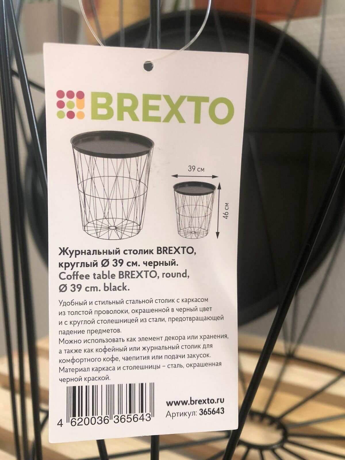 Журнальный столик Brexto, диаметр 39 см, высота 46 см, черный, хай-тек, стальной интересное: