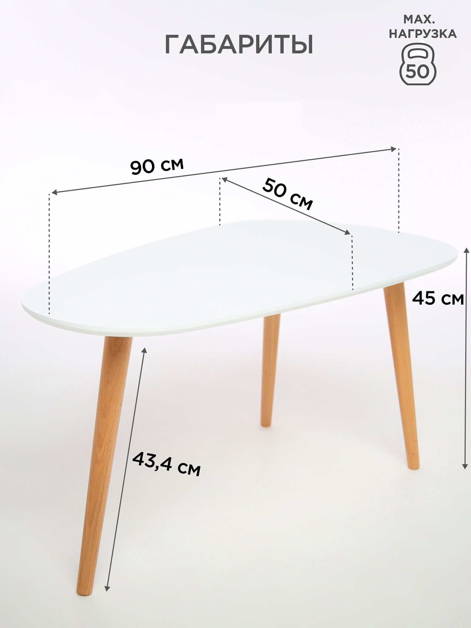 Журнальный столик "Нико" 90х50х45 см, массив дерева, МДФ, белый/бук, 3 ножки, подпятники