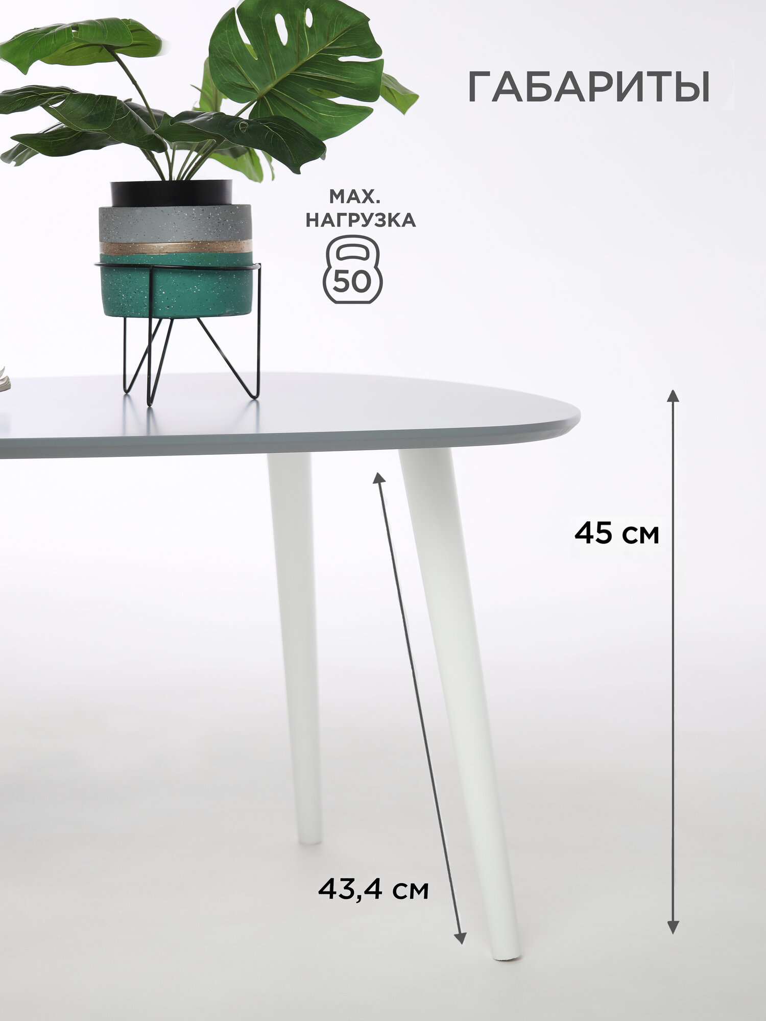 Журнальный столик "Нико" 90х50х45 см, массив дерева, МДФ, белый/серый, 3 ножки, подпятники