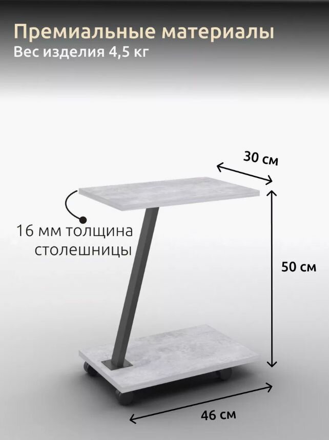 Стол журнальный Милан, приставной, на колесиках, светло серый. интересное: