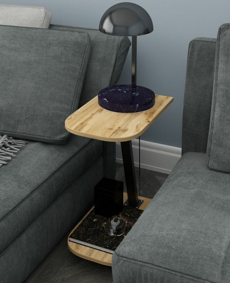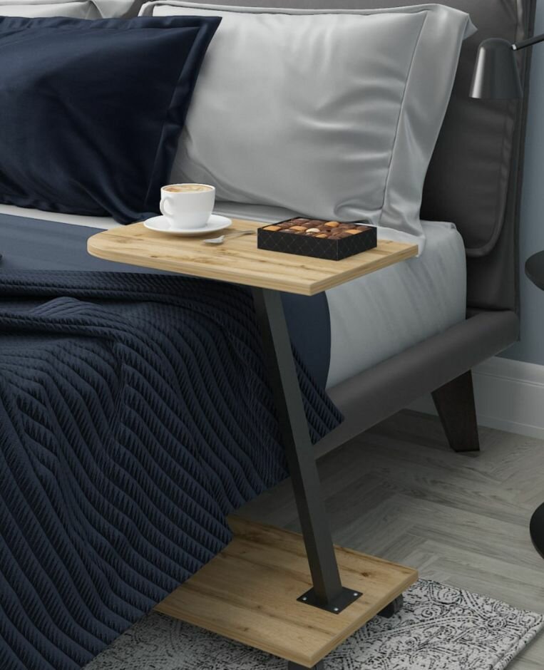 Стол журнальный "Милан-К", приставной, металлический каркас, ЛДСП, серый, на колёсиках