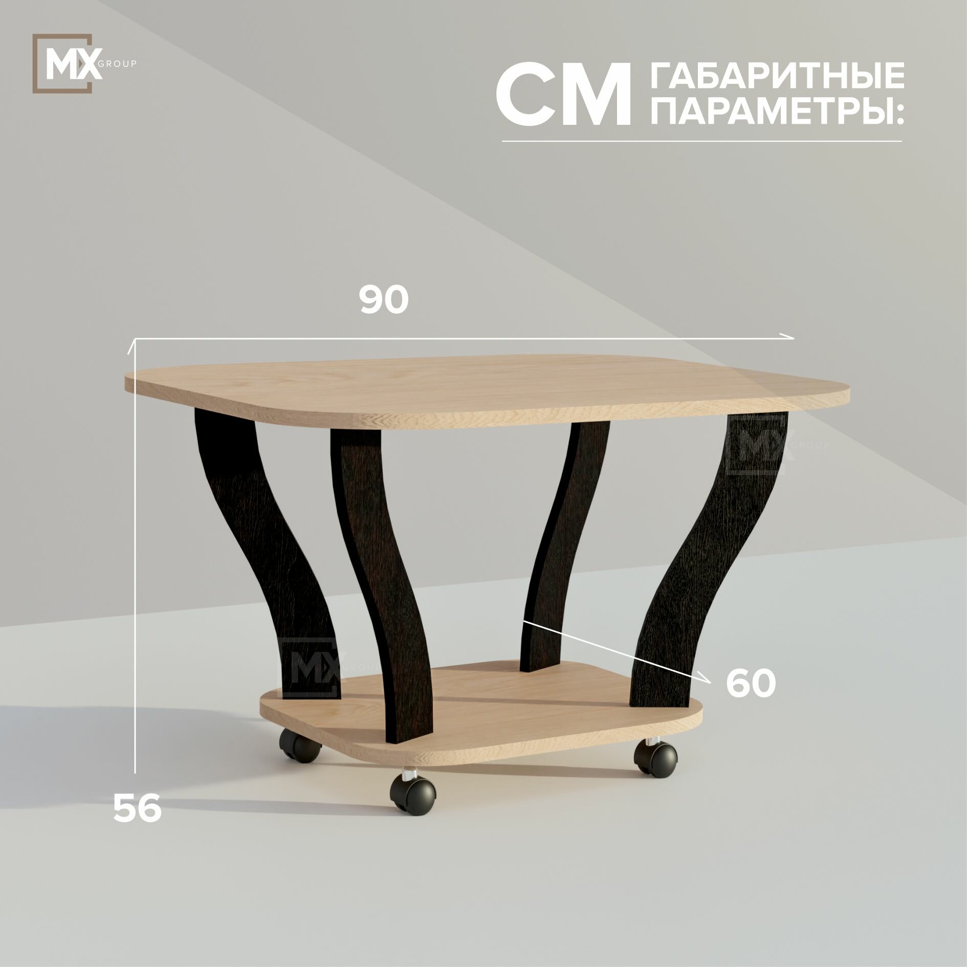 Журнальный стол на колесных опорах, Венге и Дуб Молочный, 560x900x500 мм, из ЛДСП