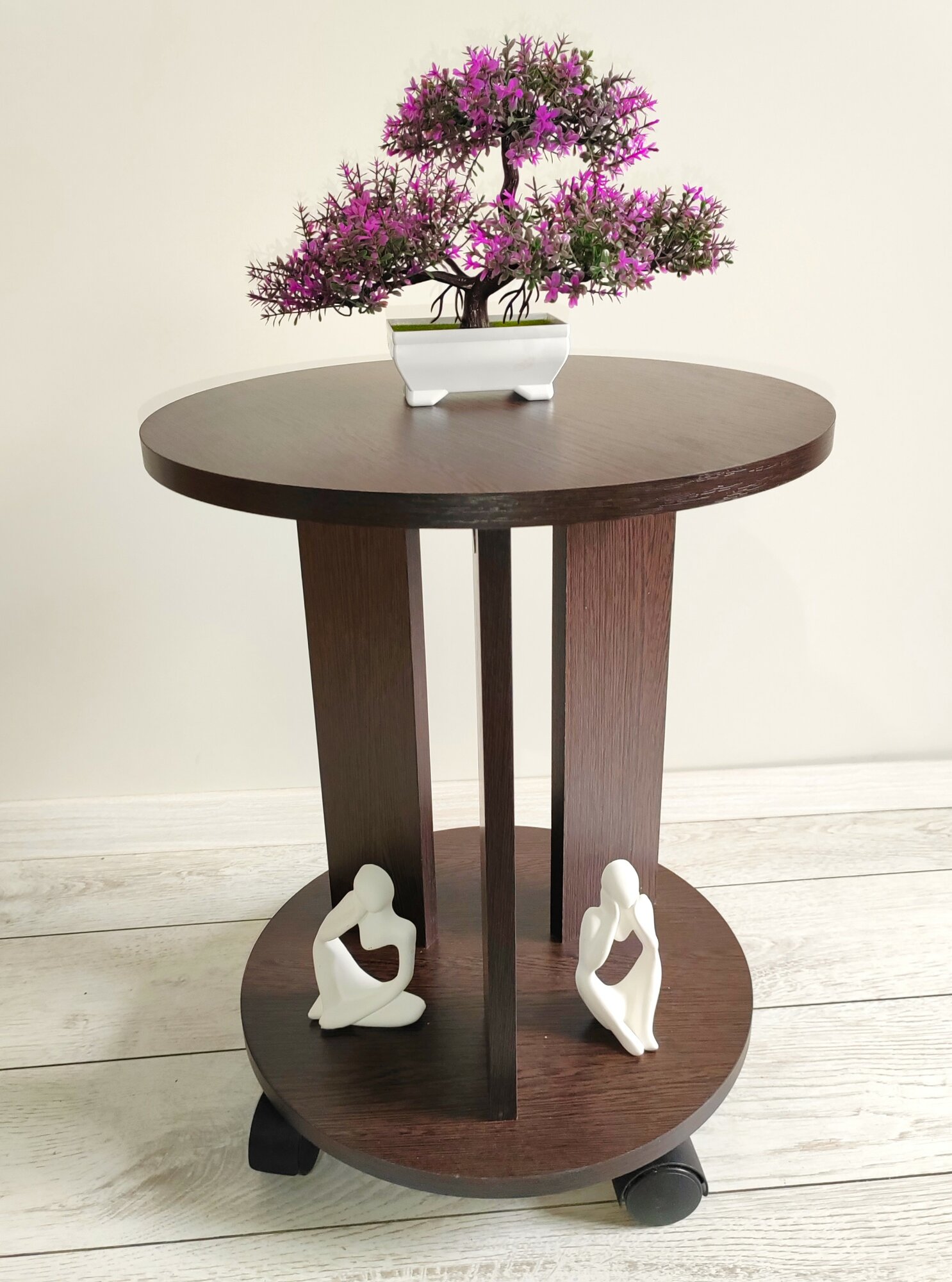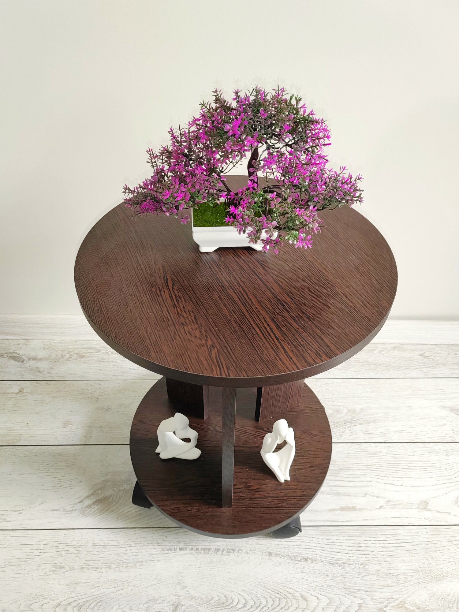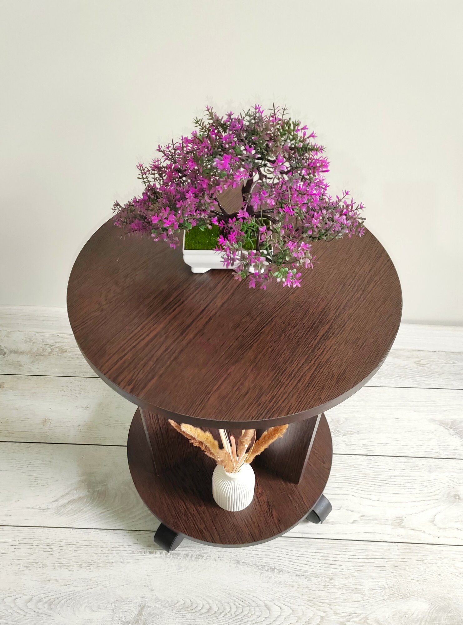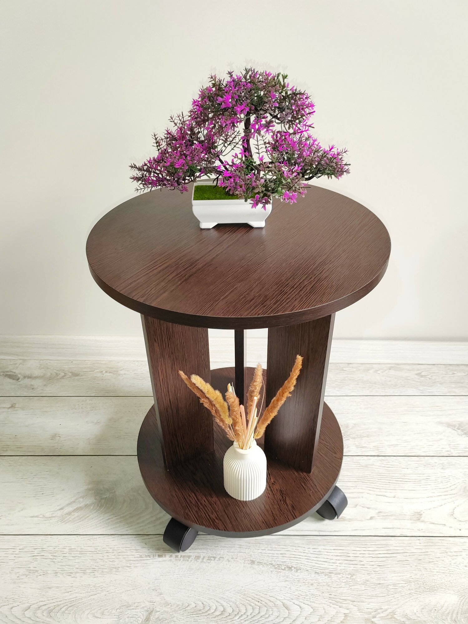 Журнальный столик на колесиках "ЭЛ-МА", круглый, дуб сонома