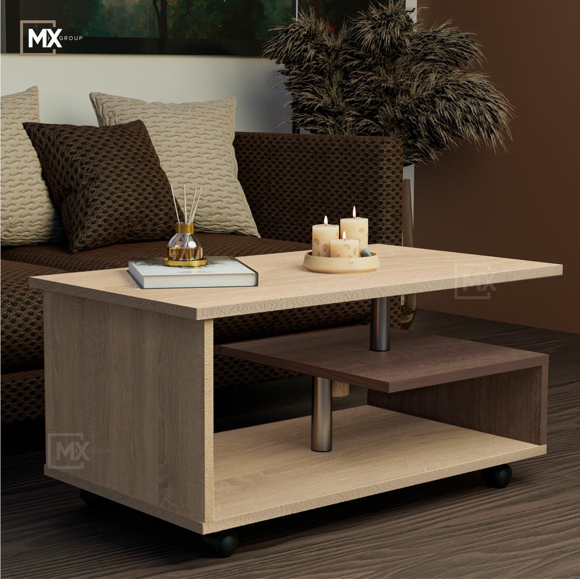 Журнальный стол ARNIKA "Консул-5", дуб сонома, ясень шимо, на колесиках, для гостиной