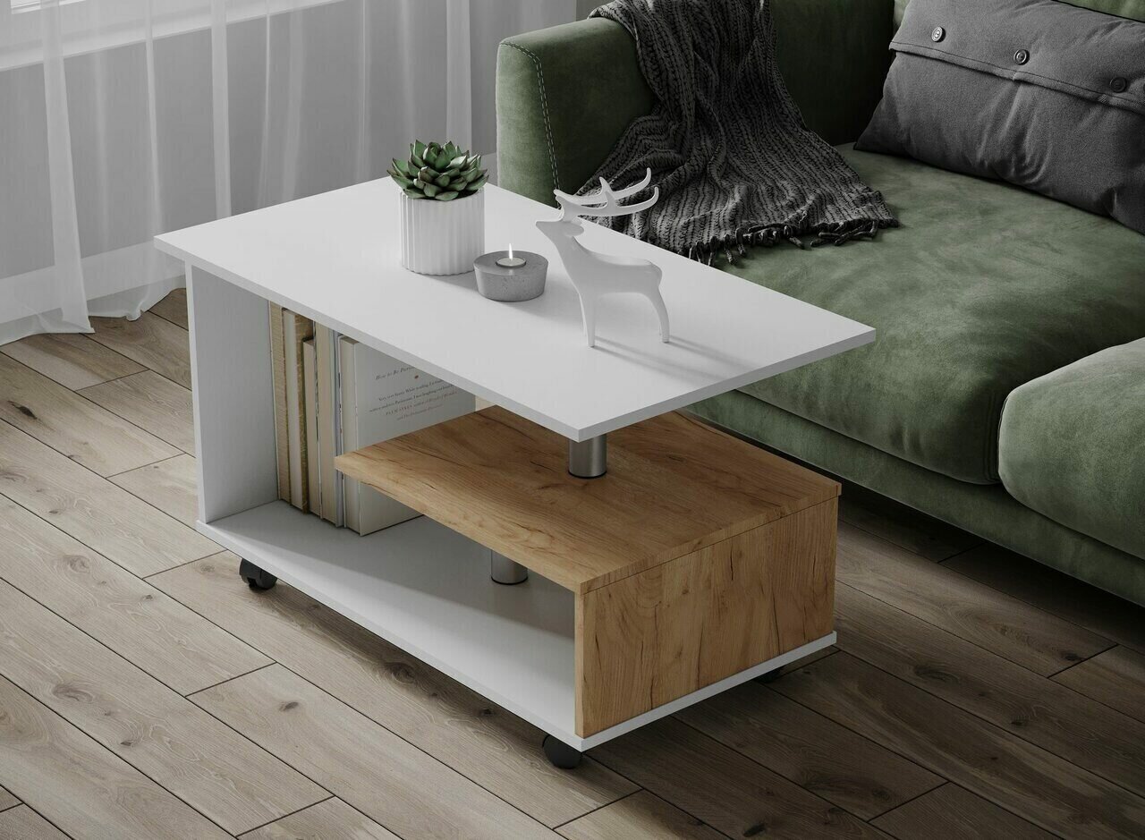 Журнальный стол Тэкс, Консул-5, 90х50х56см, белый/дуб крафт золотой