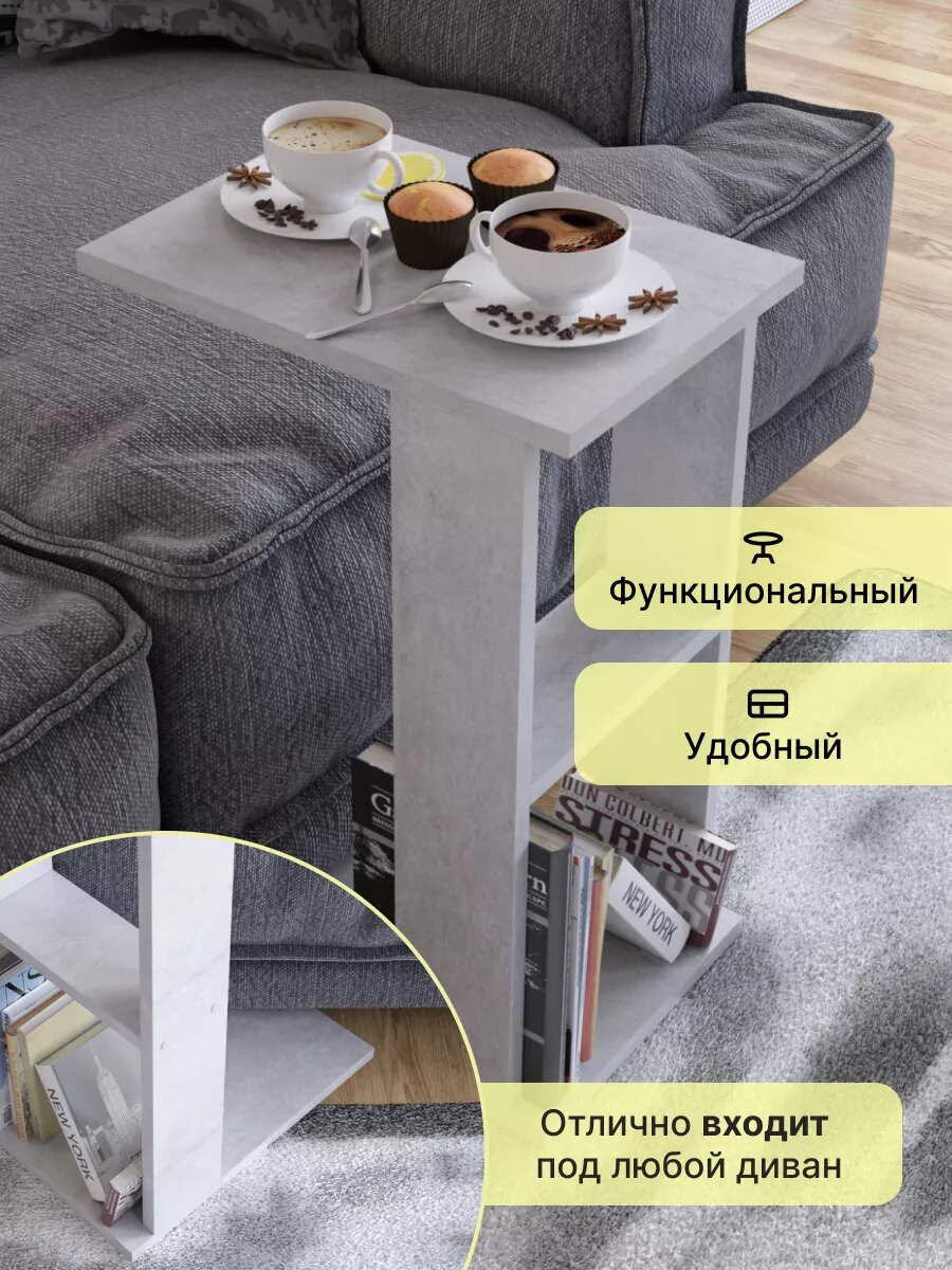 Ниже Вы можете прочитать отзывы на Стол журнальный приставной Бетон, ознакомится с подробными характеристиками, посмотреть интересные обзоры и фотографии на Стол журнальный приставной Бетон.