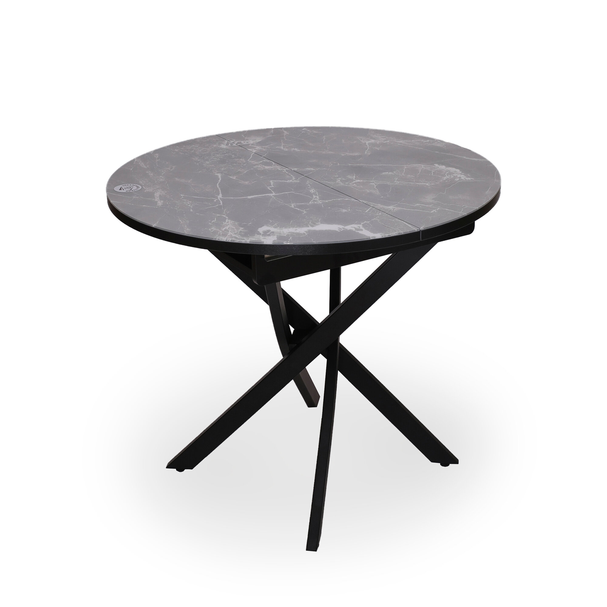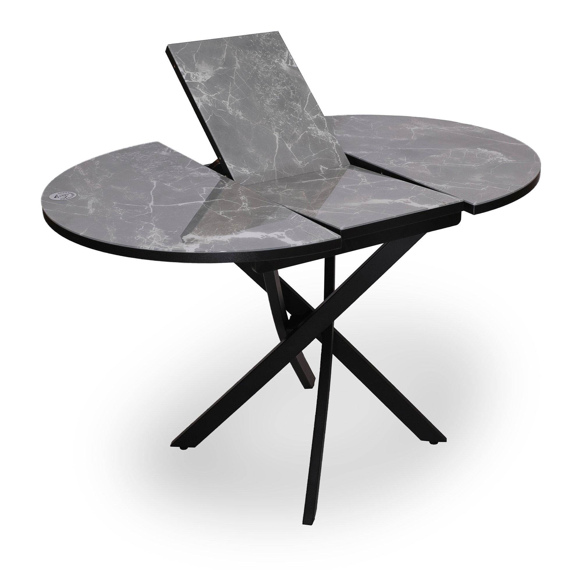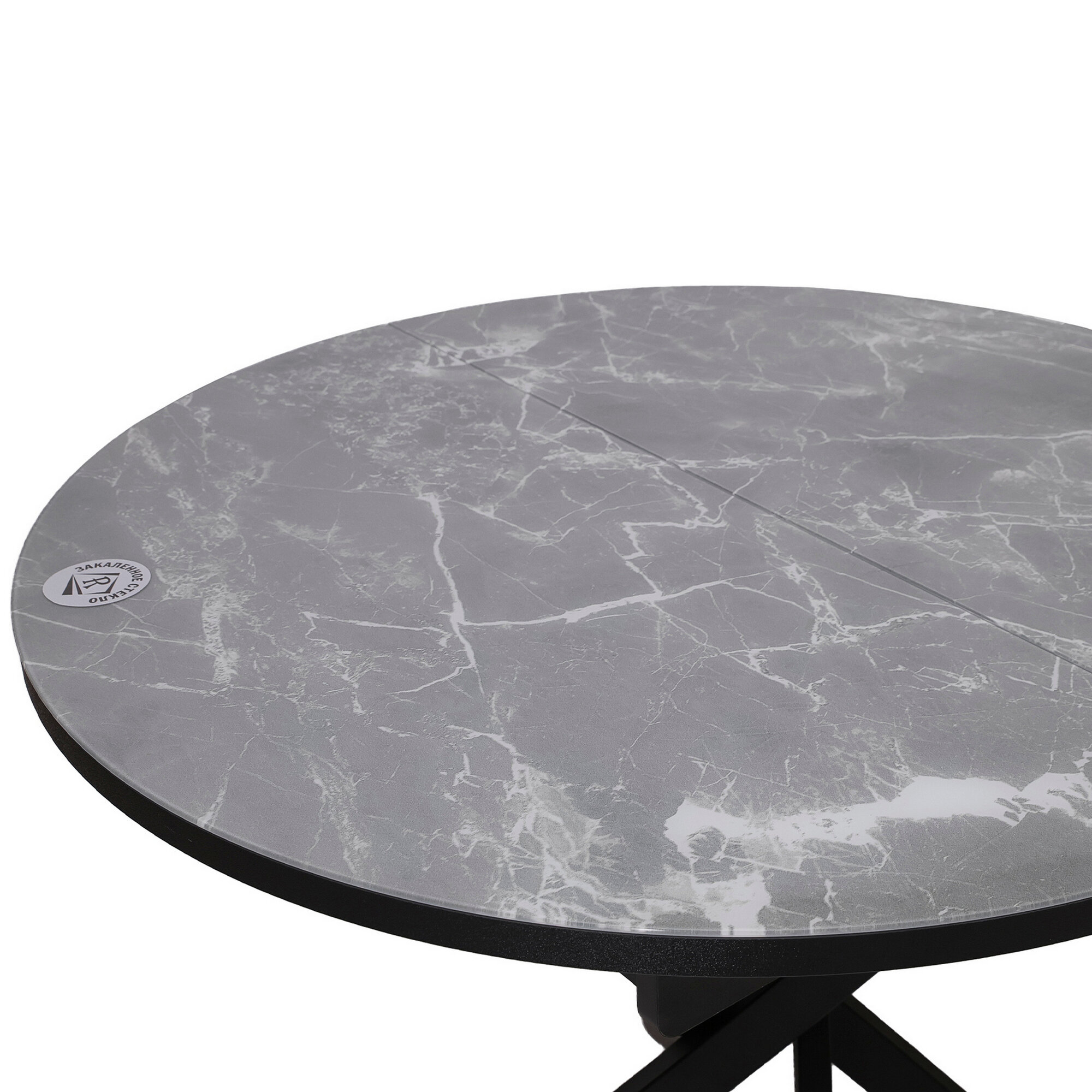 Купить Стол раздвижной со стеклом ГРАЦИЯ-2 89/120х89см, мрамор светло-серый, черный, RI-COM