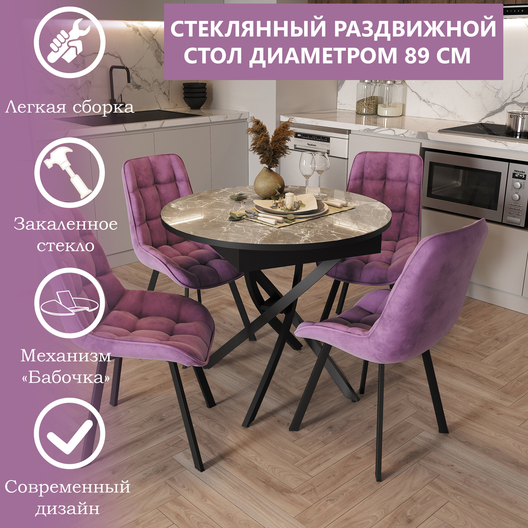 Стол раздвижной со стеклом ГРАЦИЯ-2 89/120х89см, мрамор светло-серый, черный, RI-COM интересное: