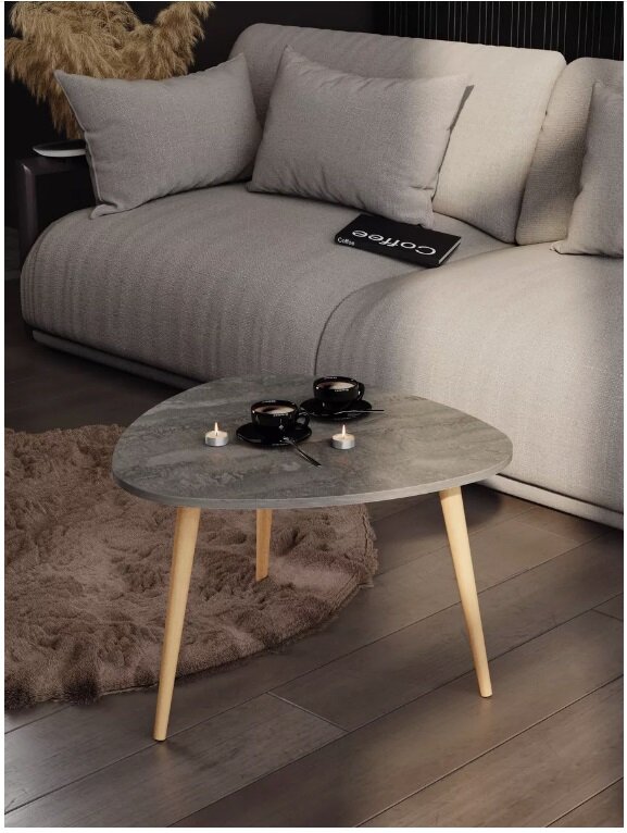 Стол журнальный Mebstudia "Сканди" треугольный (серый камень), 66,5х67,5х46,5 см 58251