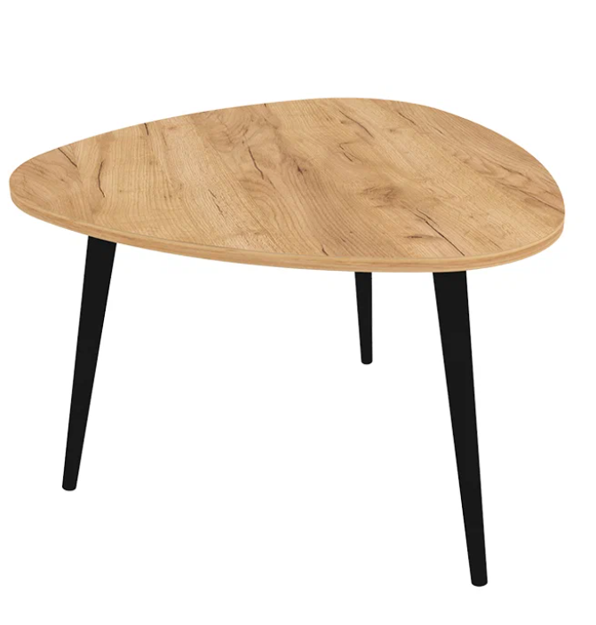 Стол журнальный Mebstudia "Сканди" треугольный (дуб/крафт золотой, с черными ножками), 66,5х67,5х46,5 см 64008