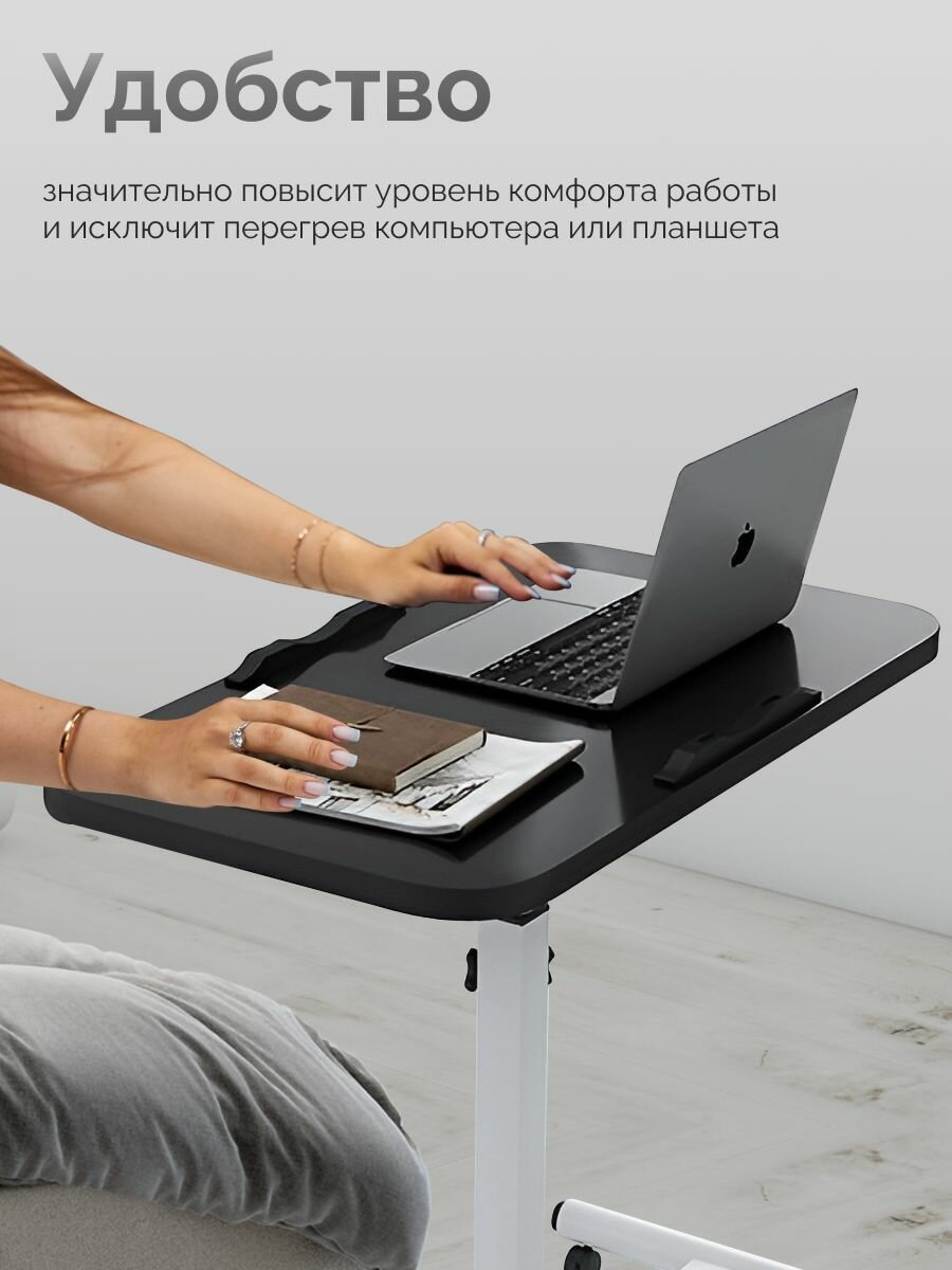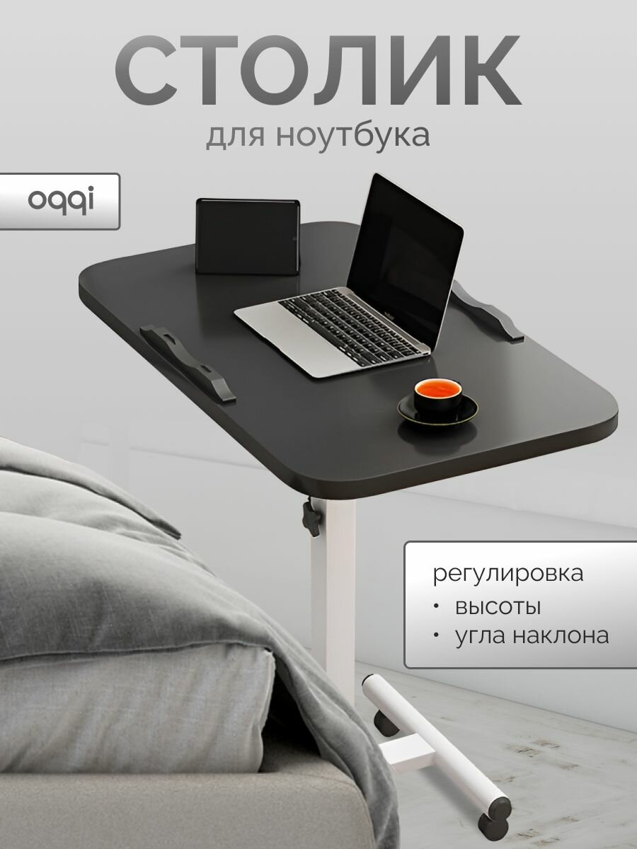 Столик для ноутбука прикроватный складной рабочий на колесах OQQI, 60х40х65 см для завтрака в кровать, подставка, журнальный стол, коричневый интересное: