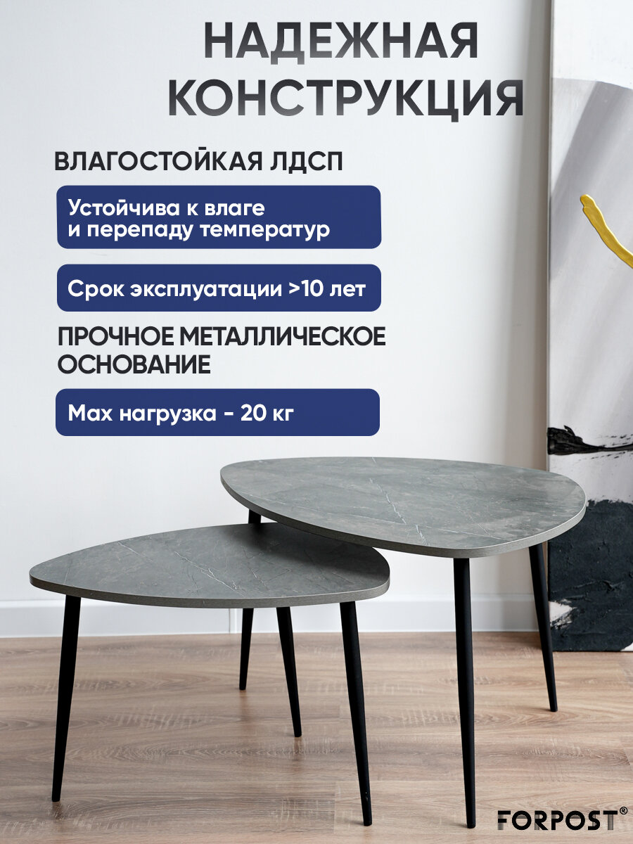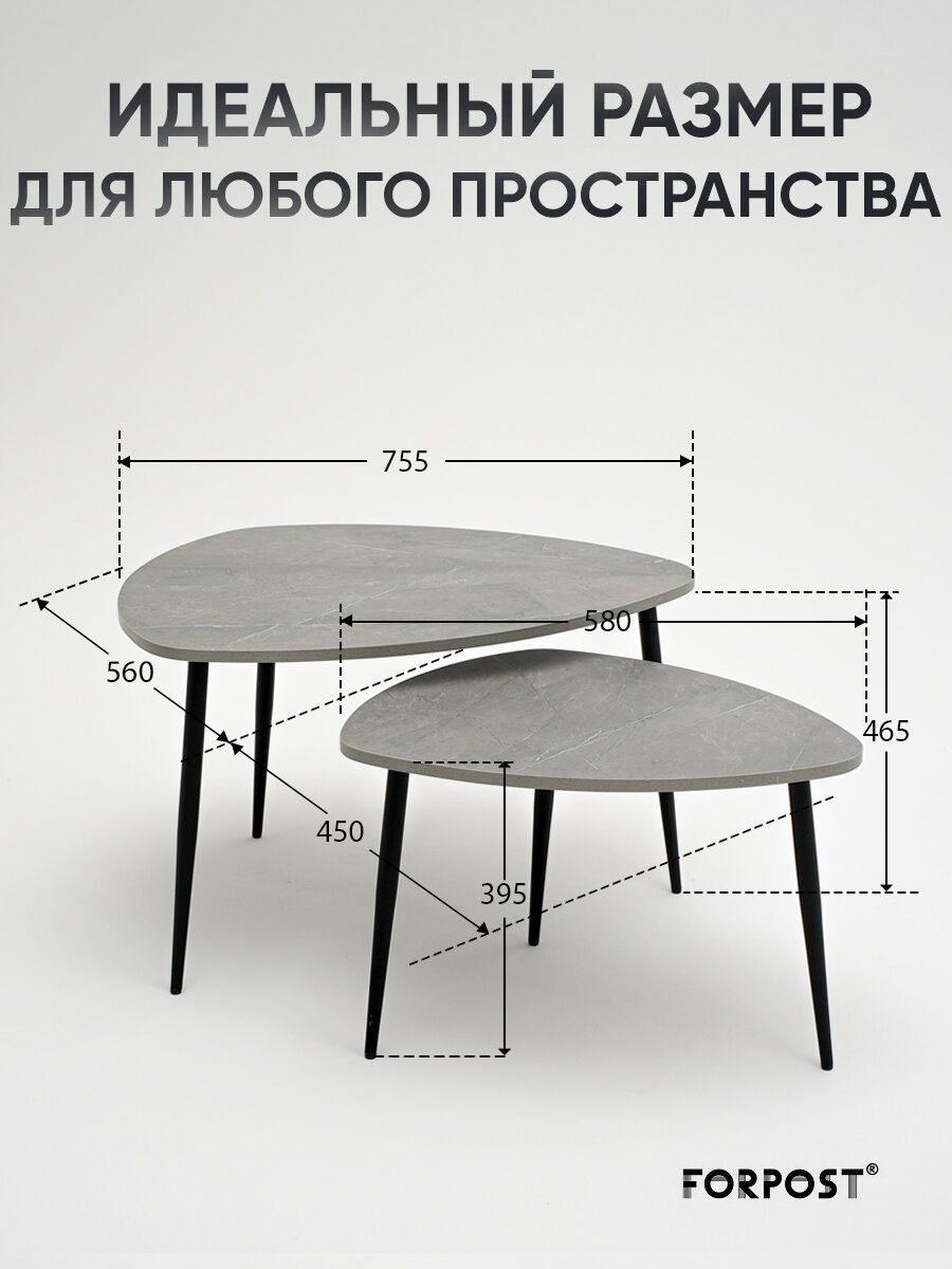 Журнальный столик Саванна, 2 штуки, бетон темный