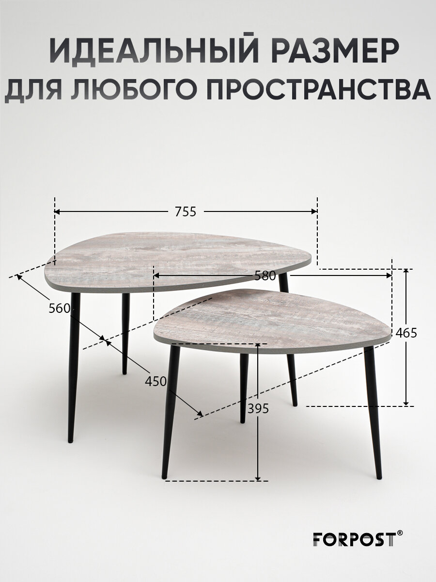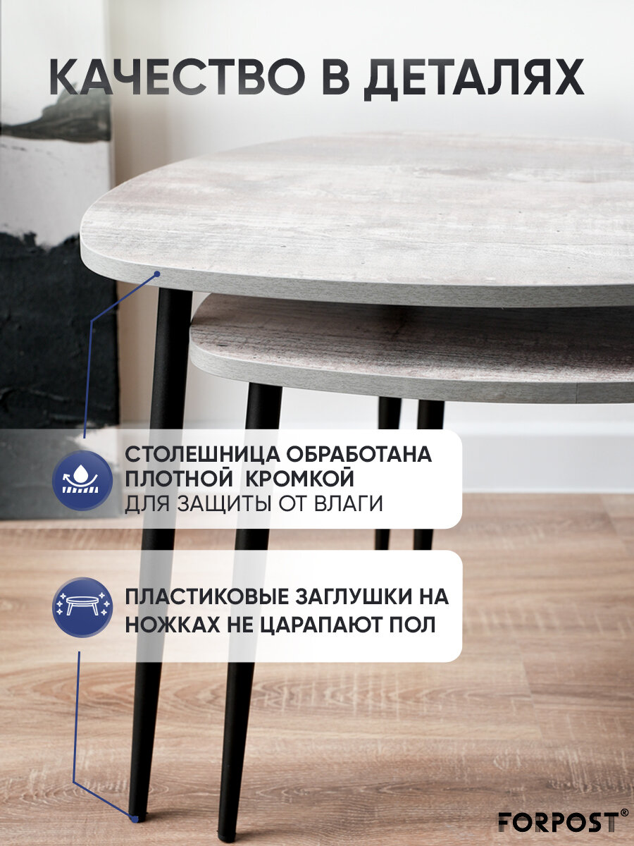 Купить Журнальный столик Саванна, 2 штуки, бетон темный