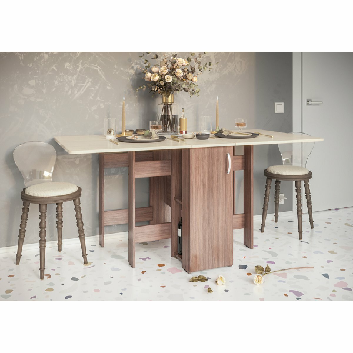 Стол-книжка СТК-003 Венге/Дуб Белфорт, ЛДСП, для столовой, кухни, гостиной, 750х800х320(750х800х1645) интерьер-центр
