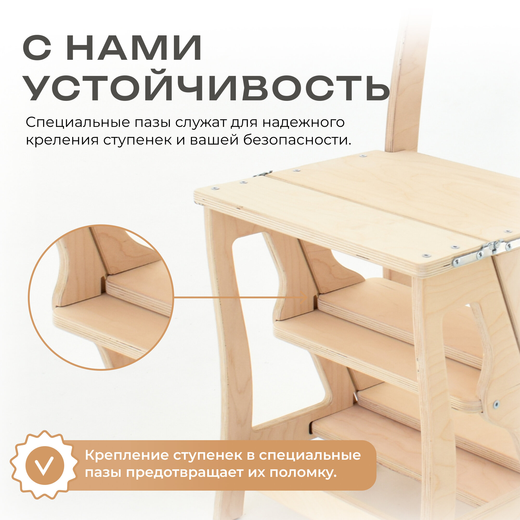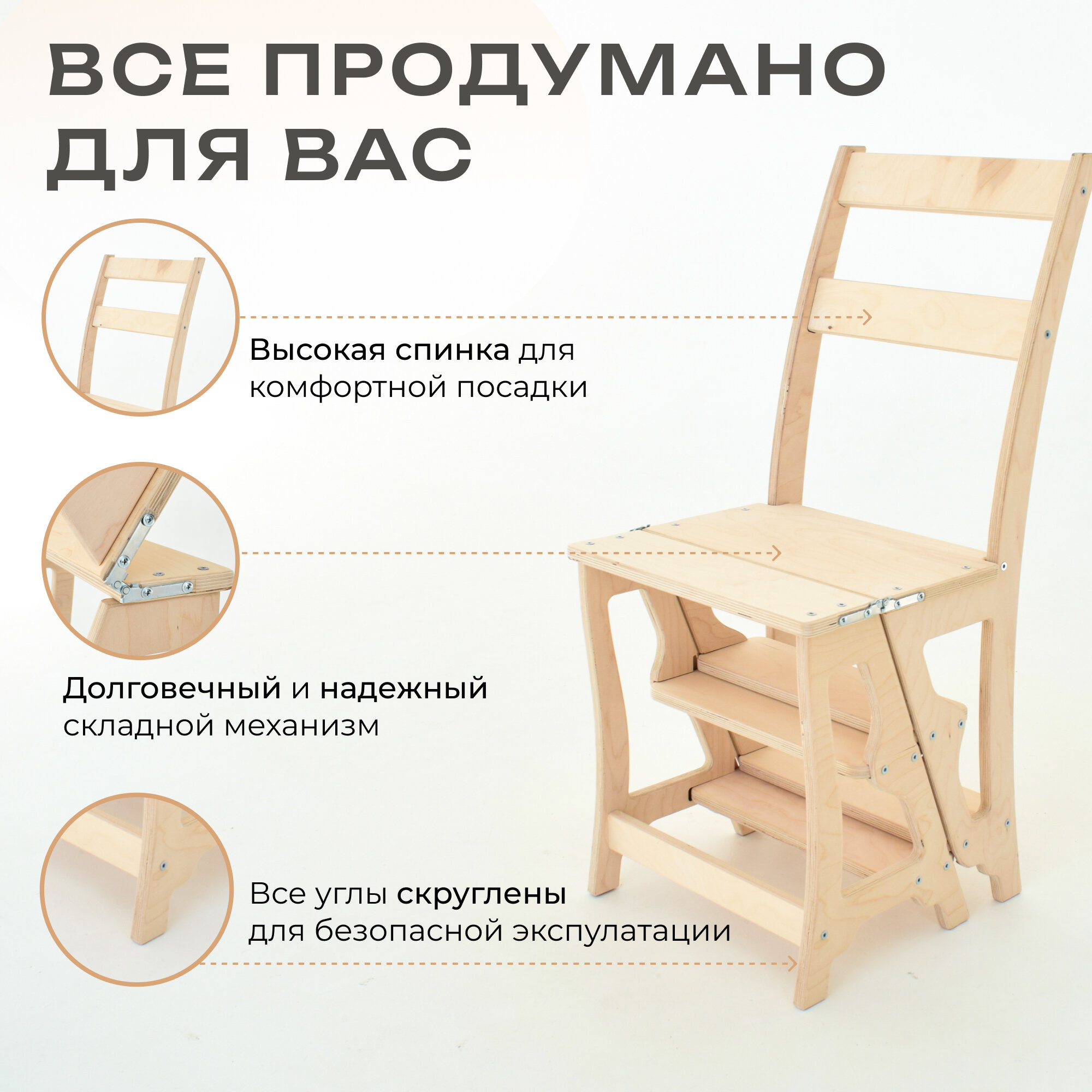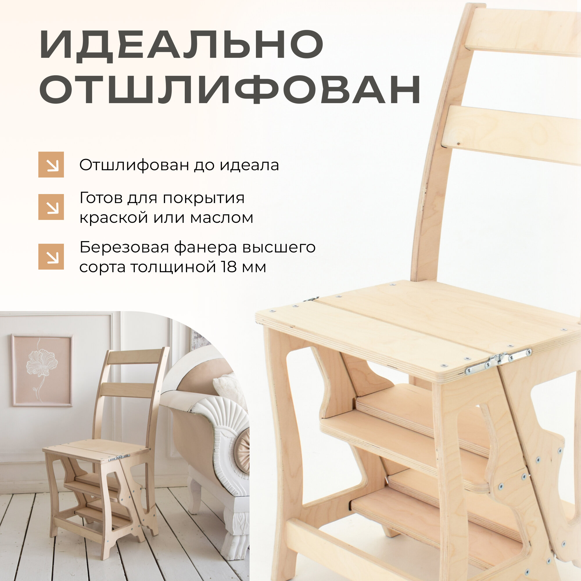 Стул-стремянка лестница, складной деревянный стул, натуральный со шлифовкой интересное: