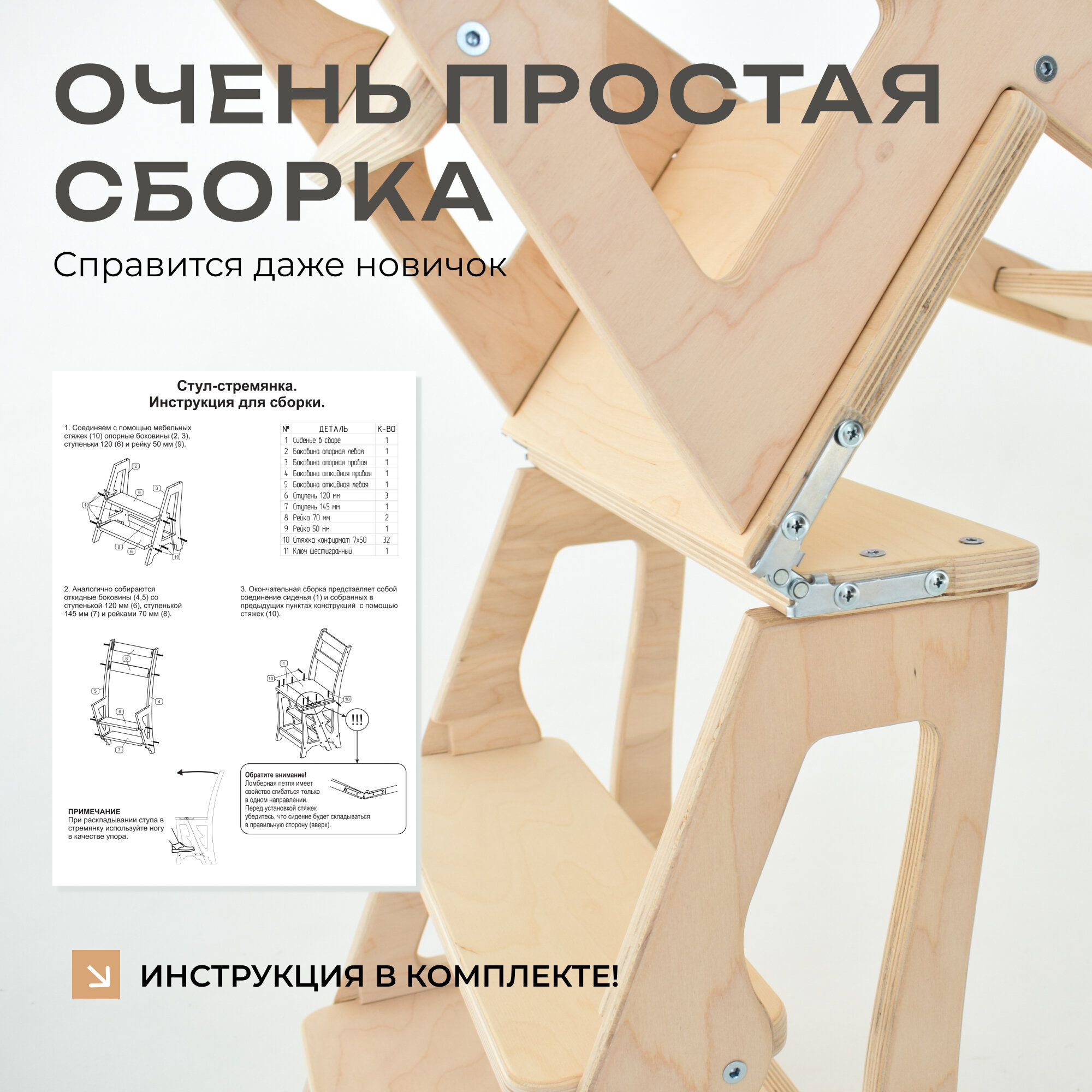 | Комплектация | стул-стремянка, инструкция по сборке, шестигранник, метизы, коробка |