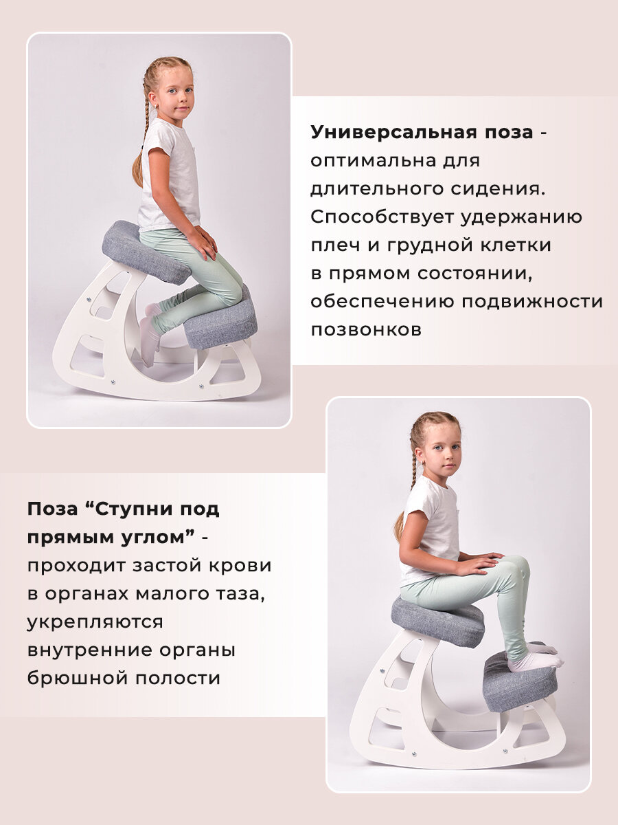 СохранитьКоленный стул, ортопедический стул, стул для школьника, стул компьютерный, детский стул, балансирующий ортопедический коленный стул JetMama, ровная осанка для детей и взрослых, для роста 130-170 см, серый интересное: