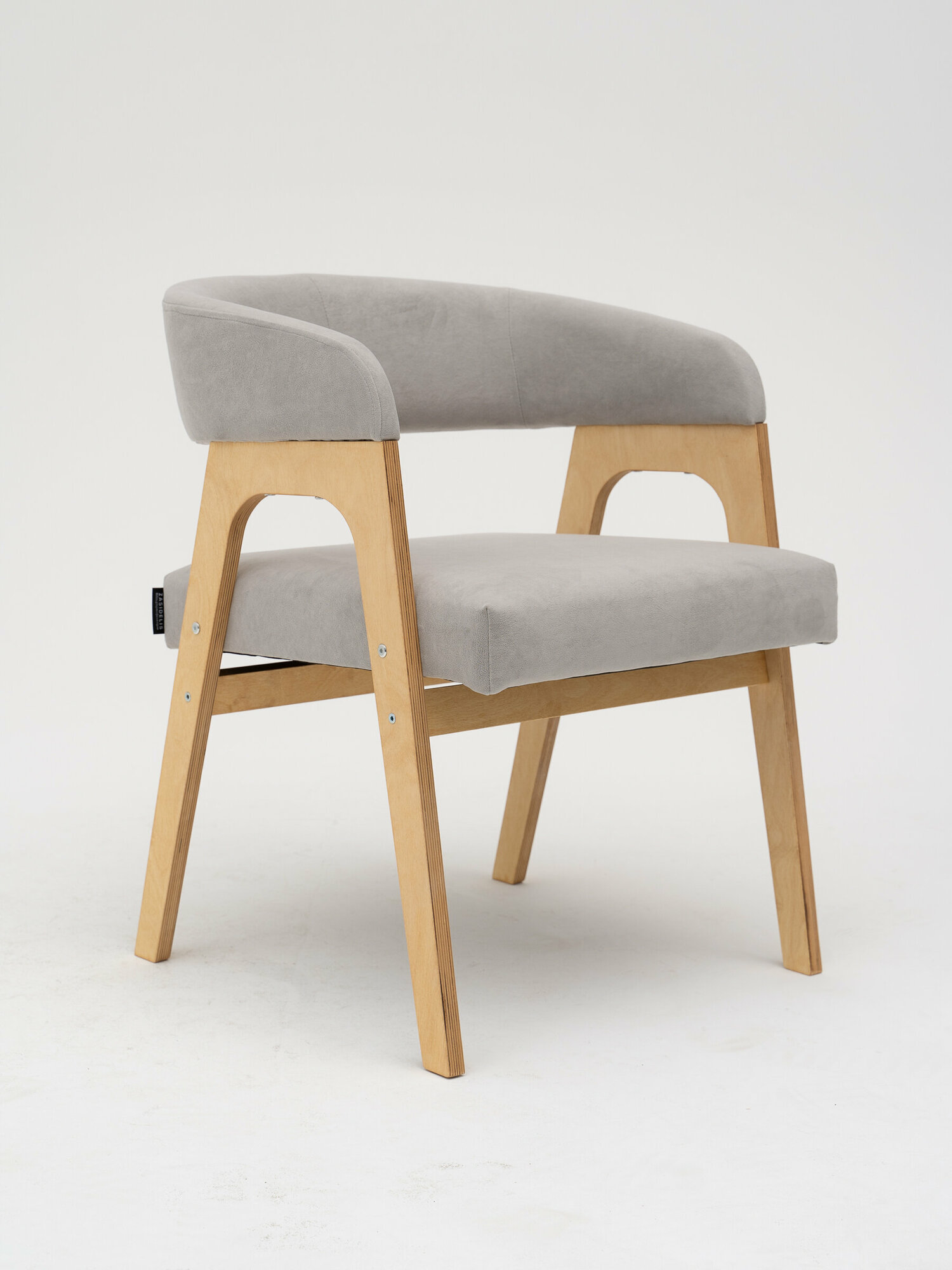 Стул кресло ZASIDELIS кайф мягкий для кухни дома и офиса светло-серый/натуральный, из велюра, 63x56x72 см, до 130кг