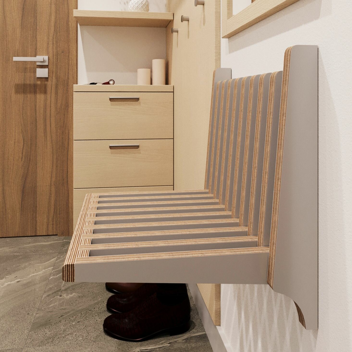 Стул откидной настенный, стул складной, раскладной стул в коридор серый АзбукаДекор интересное: