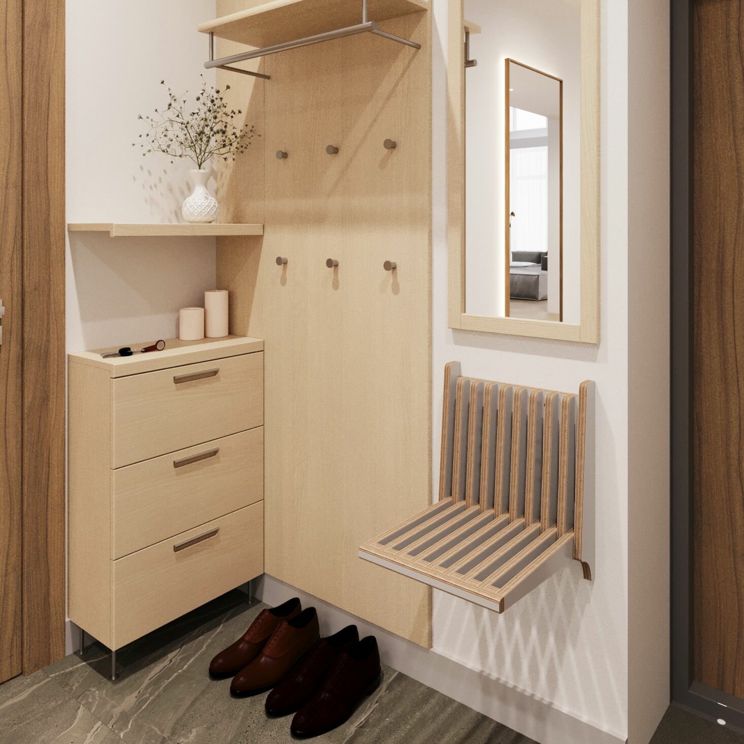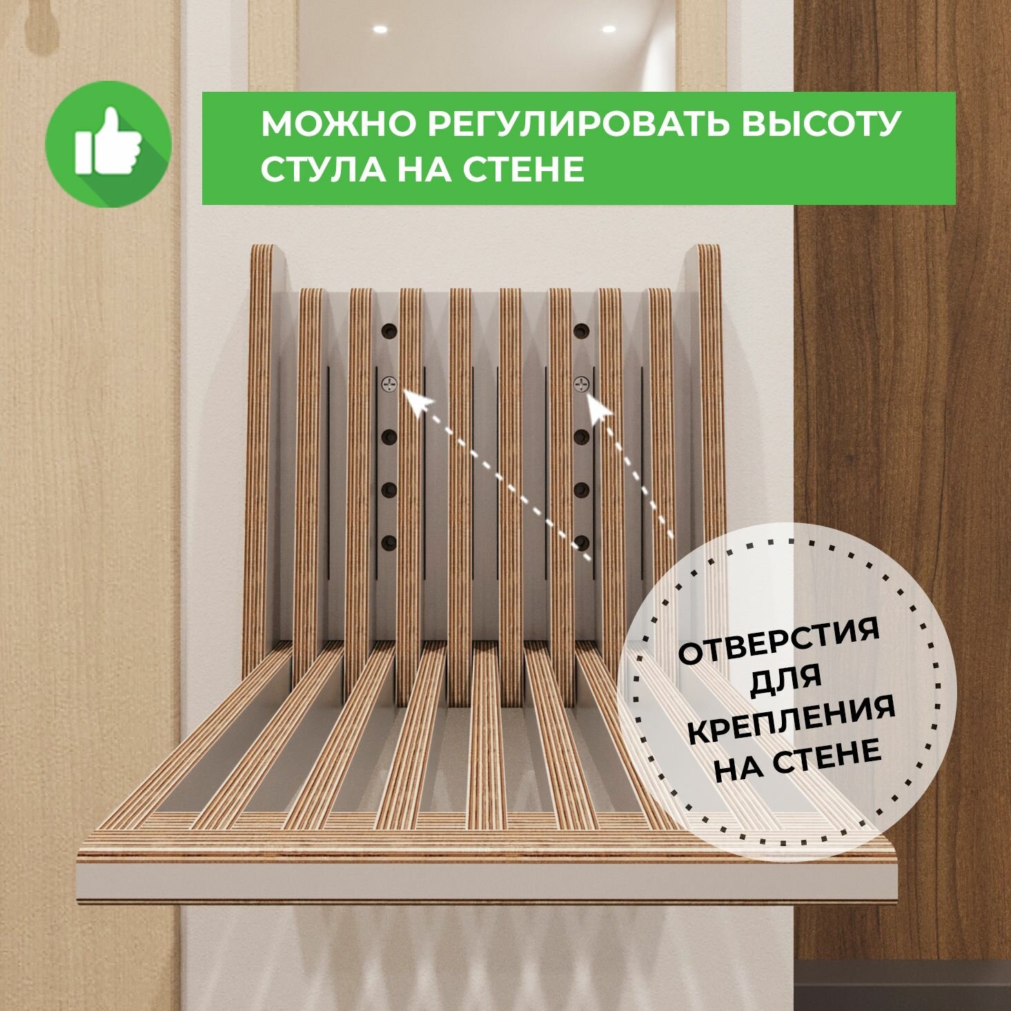 Стул складной настенный для кухни, прихожей, ванной комнаты