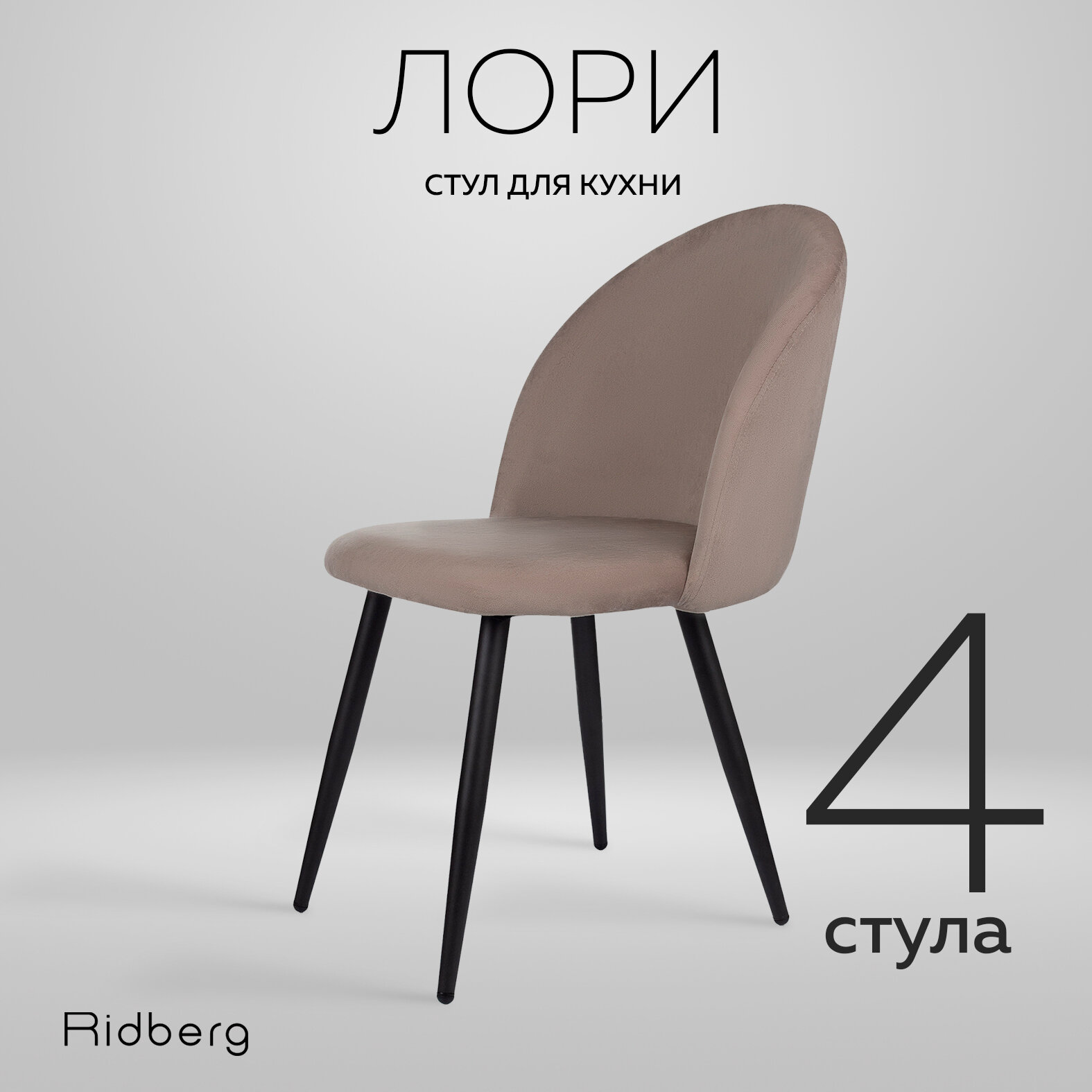 Стул для кухни Ridberg лори велюр, серо-бежевый, 1 шт., столовой, гостиной, офисный, кухонный, со спинкой, на ножках, мягкий