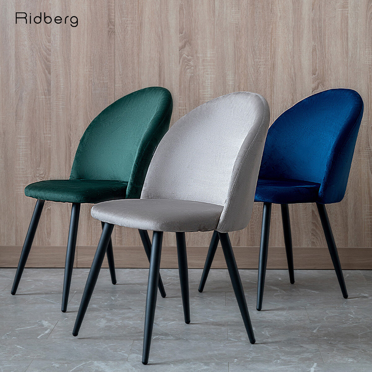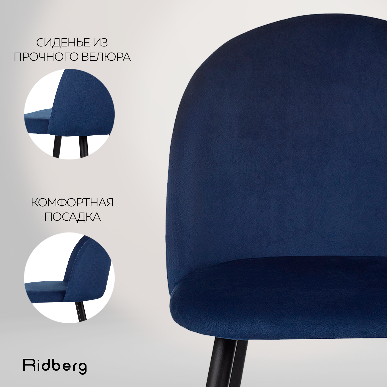 Стул для кухни Ridberg лори велюр, синий, 1 шт., столовой, гостиной, офисный, кухонный, со спинкой, на ножках, мягкий