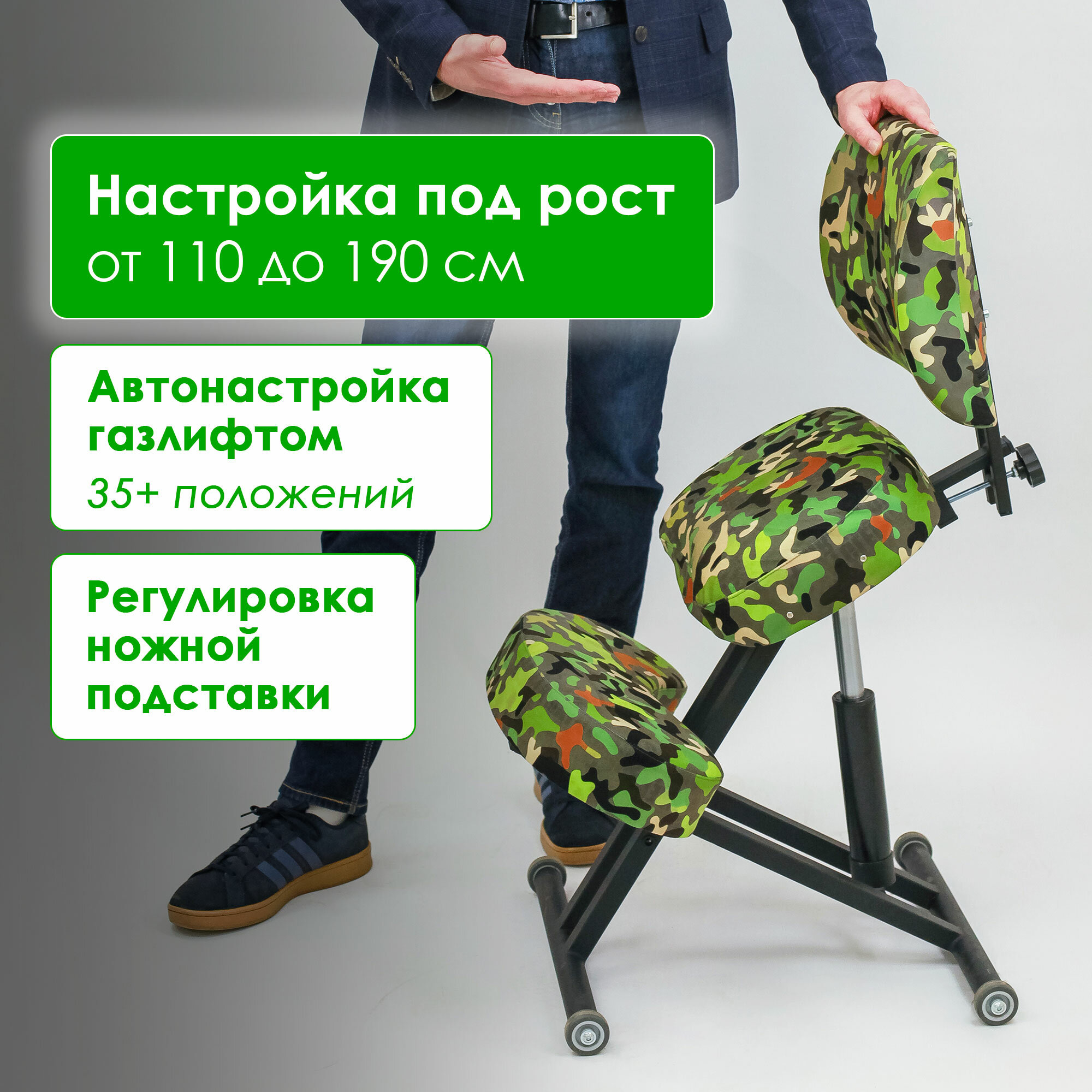 Коленный стул олимп лайт со спинкой ортопедический зеленый / камуфляж интересное: