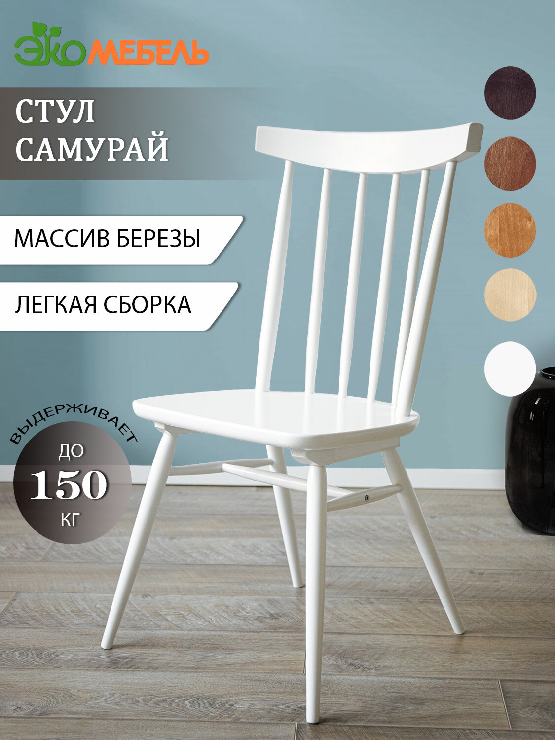 СохранитьСтул кухонный со спинкой из массива дерева "Самурай", белая эмаль, Экомебель, стулья для кухни интересное: