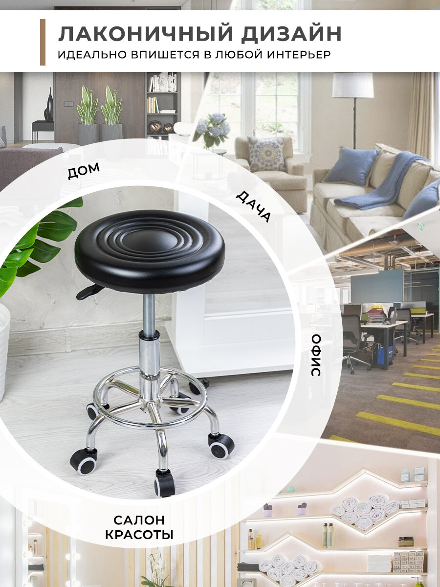 Стул мастера GEMLUX GL-BR-002BK мягкий, на колесиках, без спинки, цвет черный интересное: