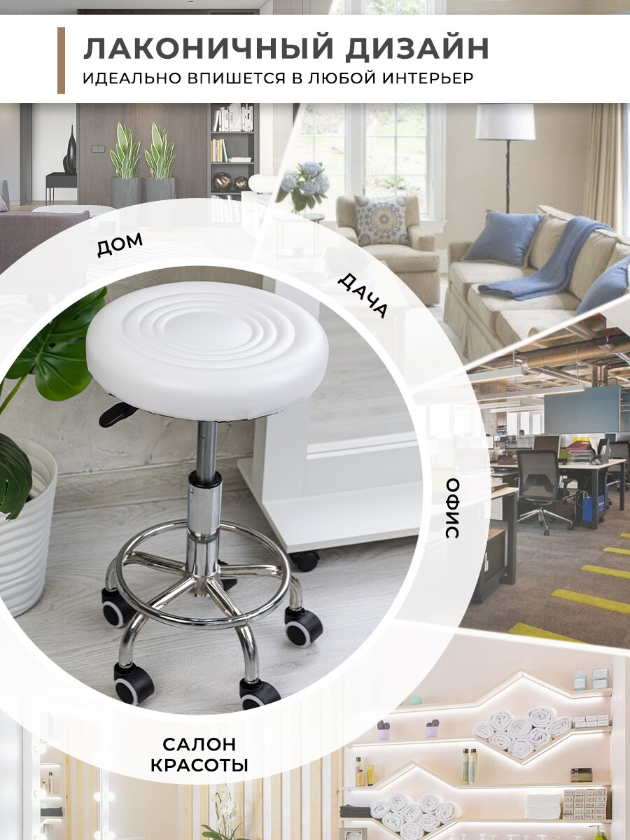 Стул мастера GEMLUX GL-BR-002WT мягкий, на колесиках, без спинки, цвет белый интересное: