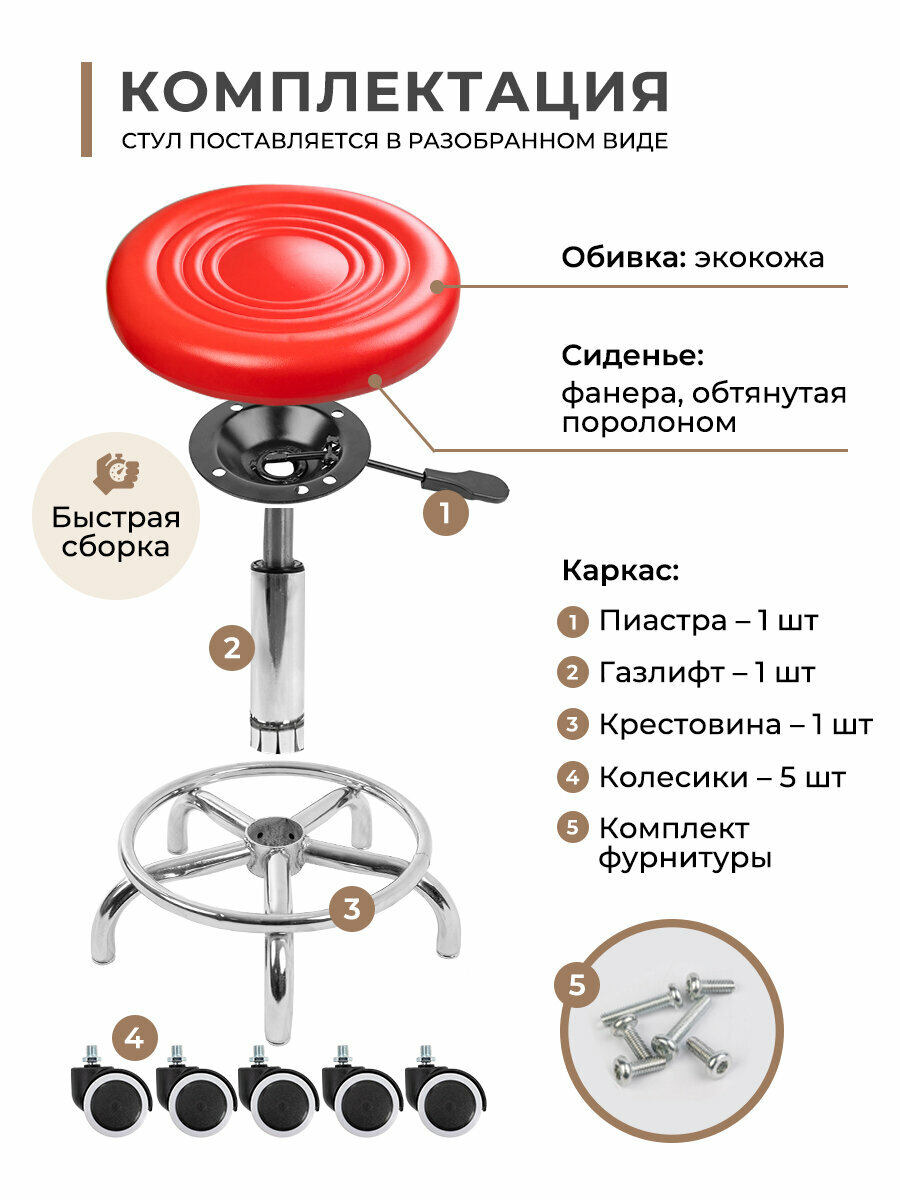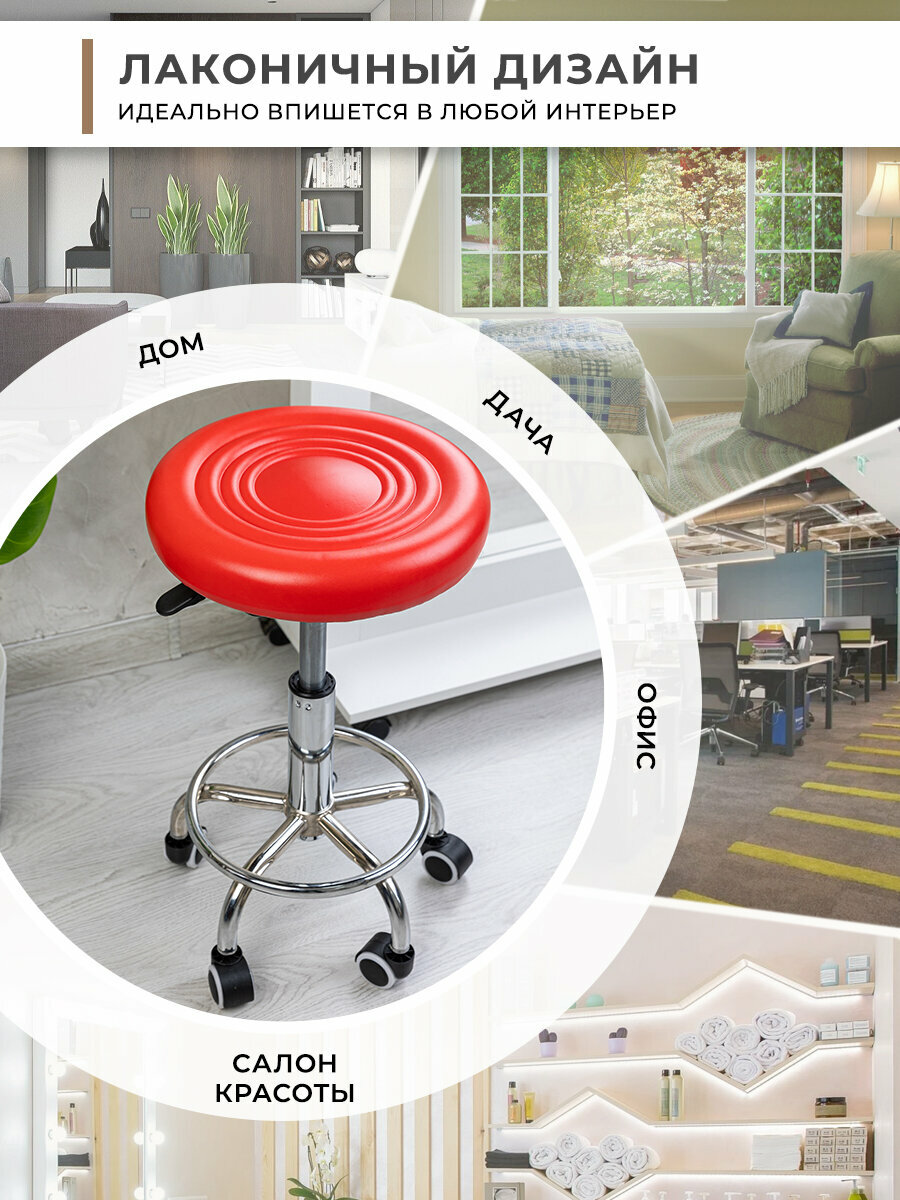 Стул мастера GEMLUX GL-BR-002RD мягкий, на колесиках, без спинки, цвет красный интересное: