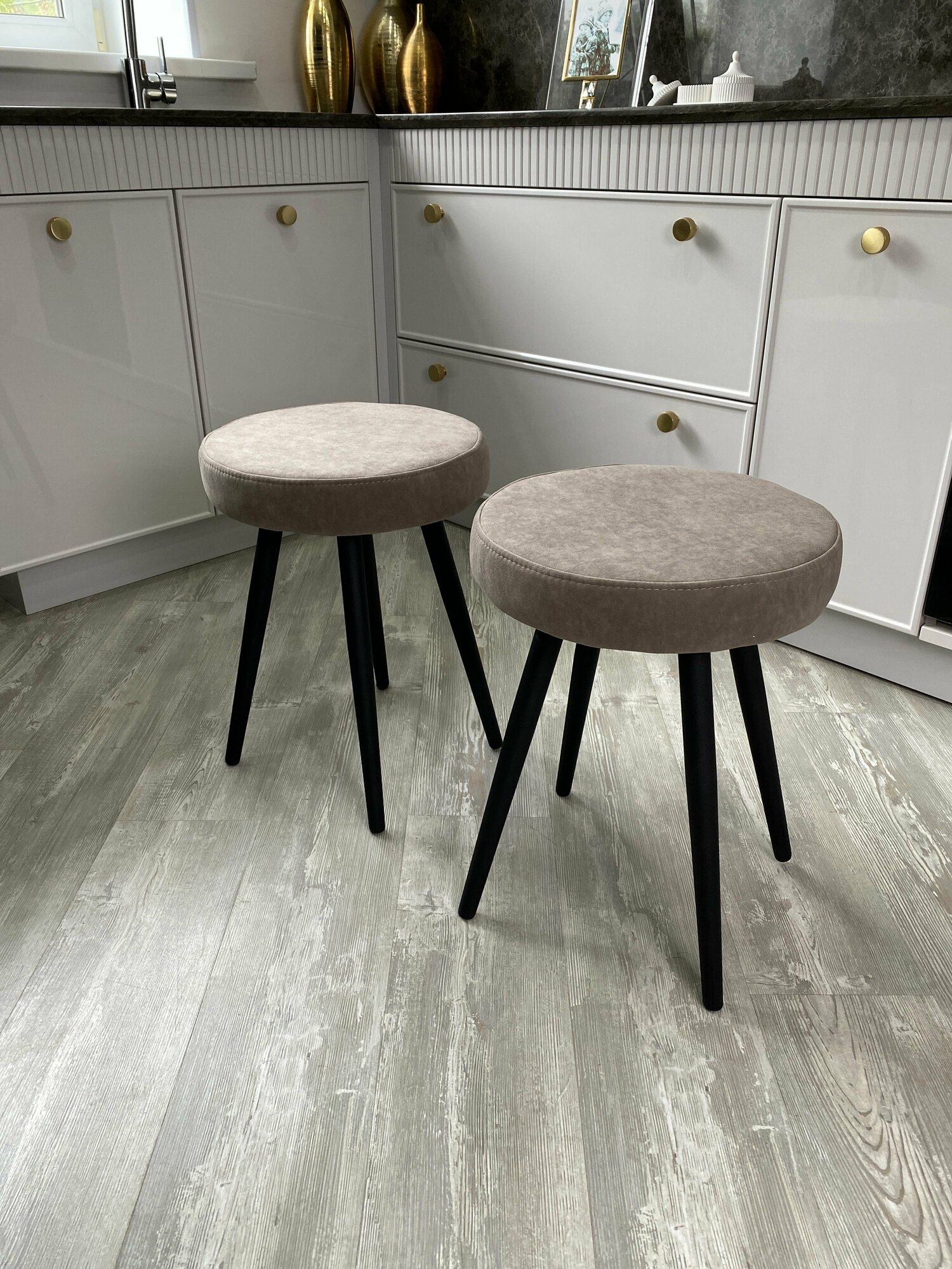 Комплект мягких табуретов Смайл 4 штуки, кухонные табуретки свело-серые