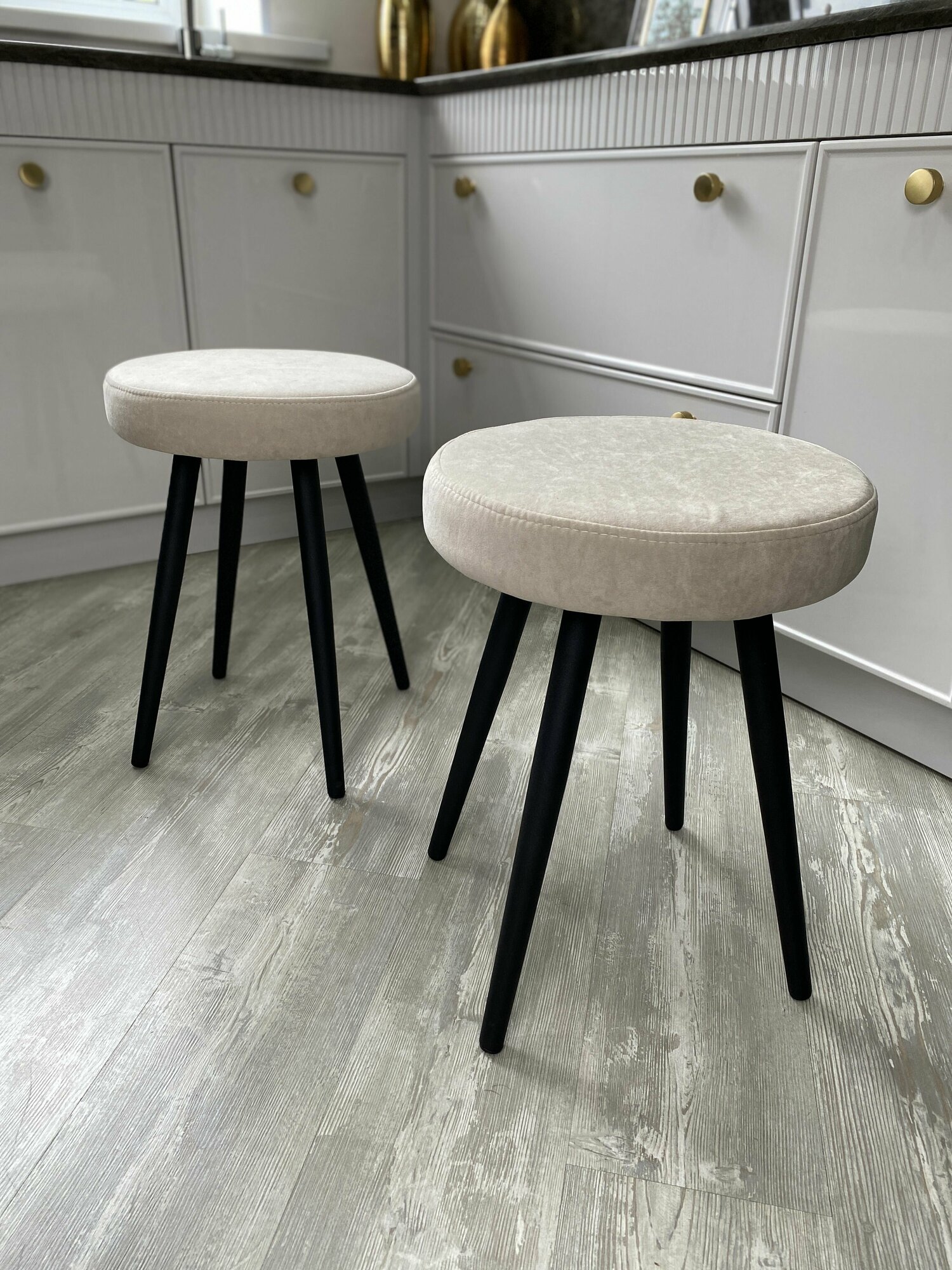 Комплект мягких табуретов Смайл 4 штуки, кухонные табуретки свело-серые