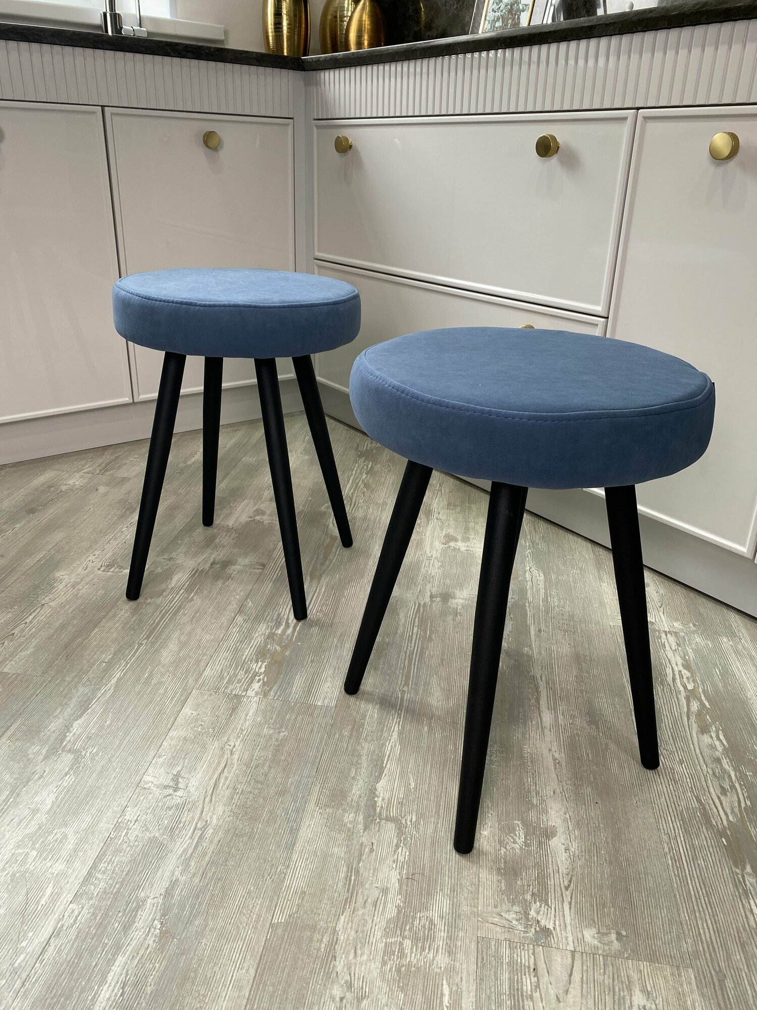 Комплект мягких табуретов Смайл 4 штуки, кухонные табуретки синие