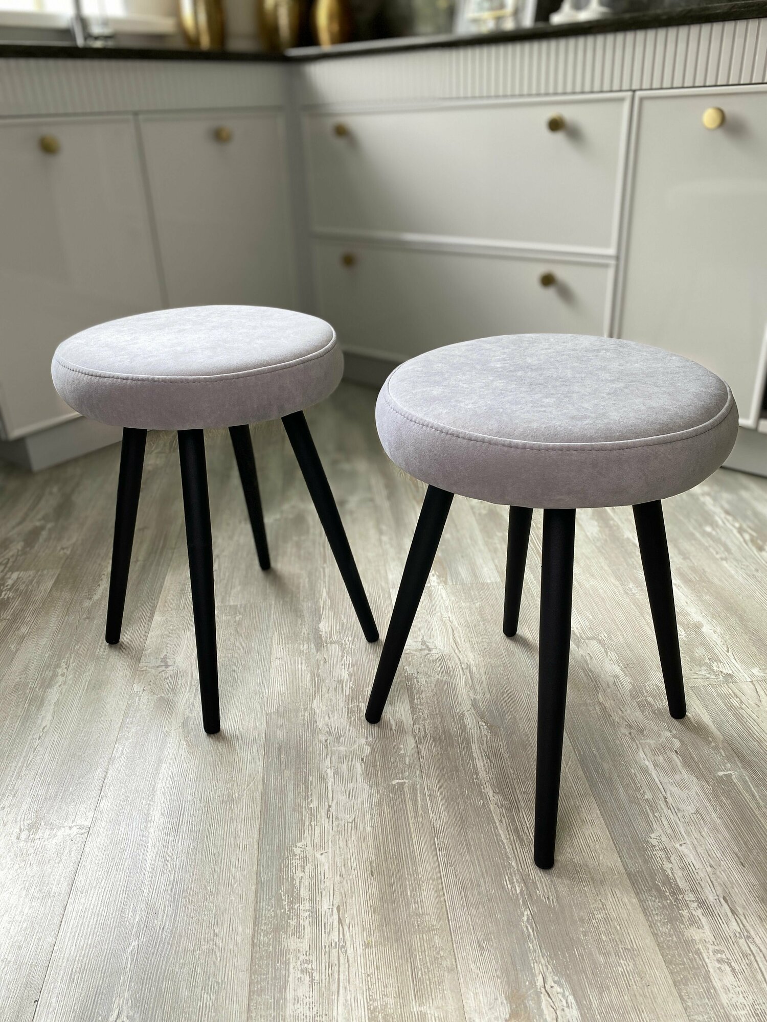 Комплект мягких табуретов Смайл 4 штуки, кухонные табуретки свело-серые