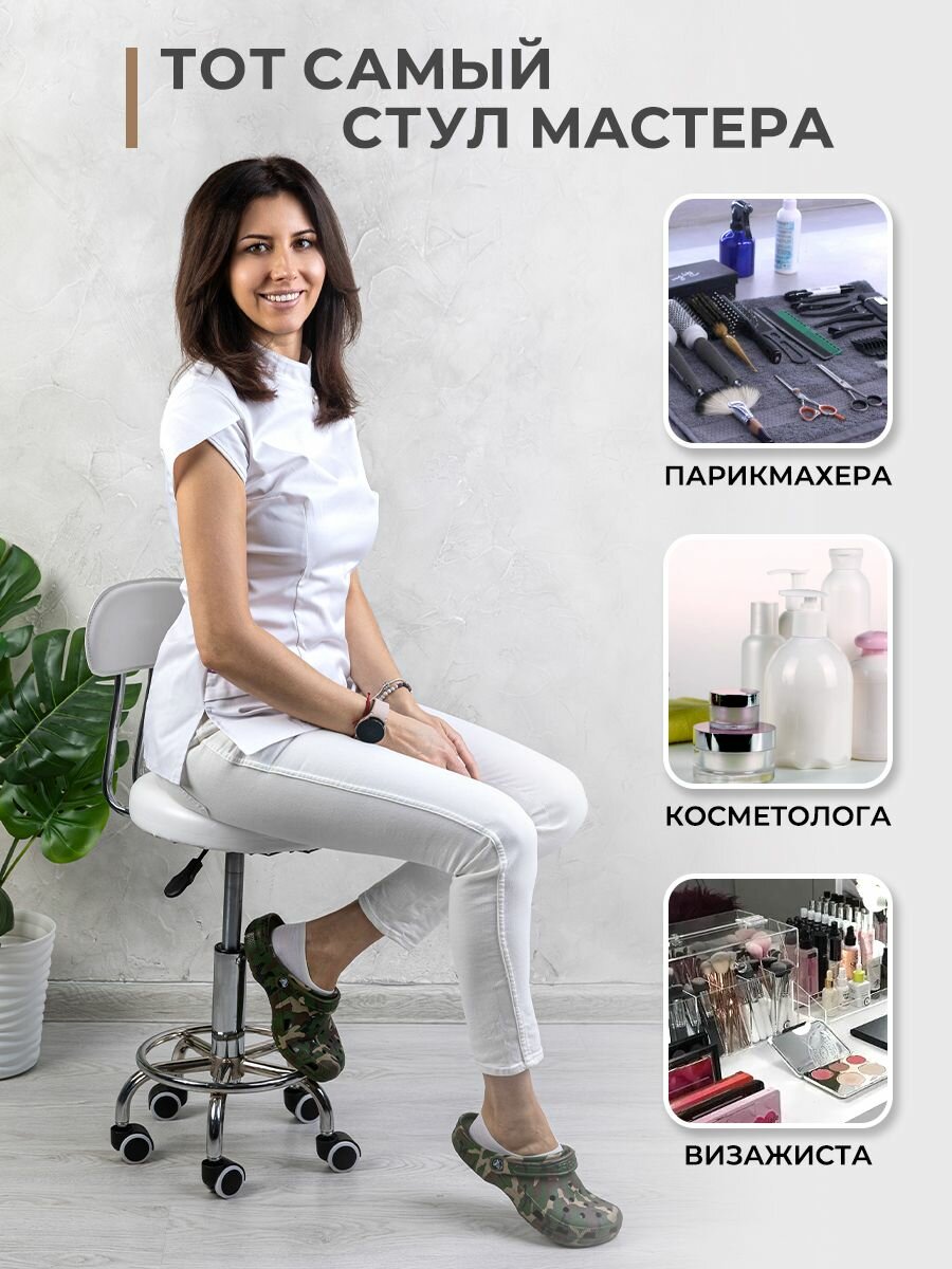 Стул мастера GL-BR-003 мягкий, на колесиках, с высокой спинкой, цвет белый интересное: